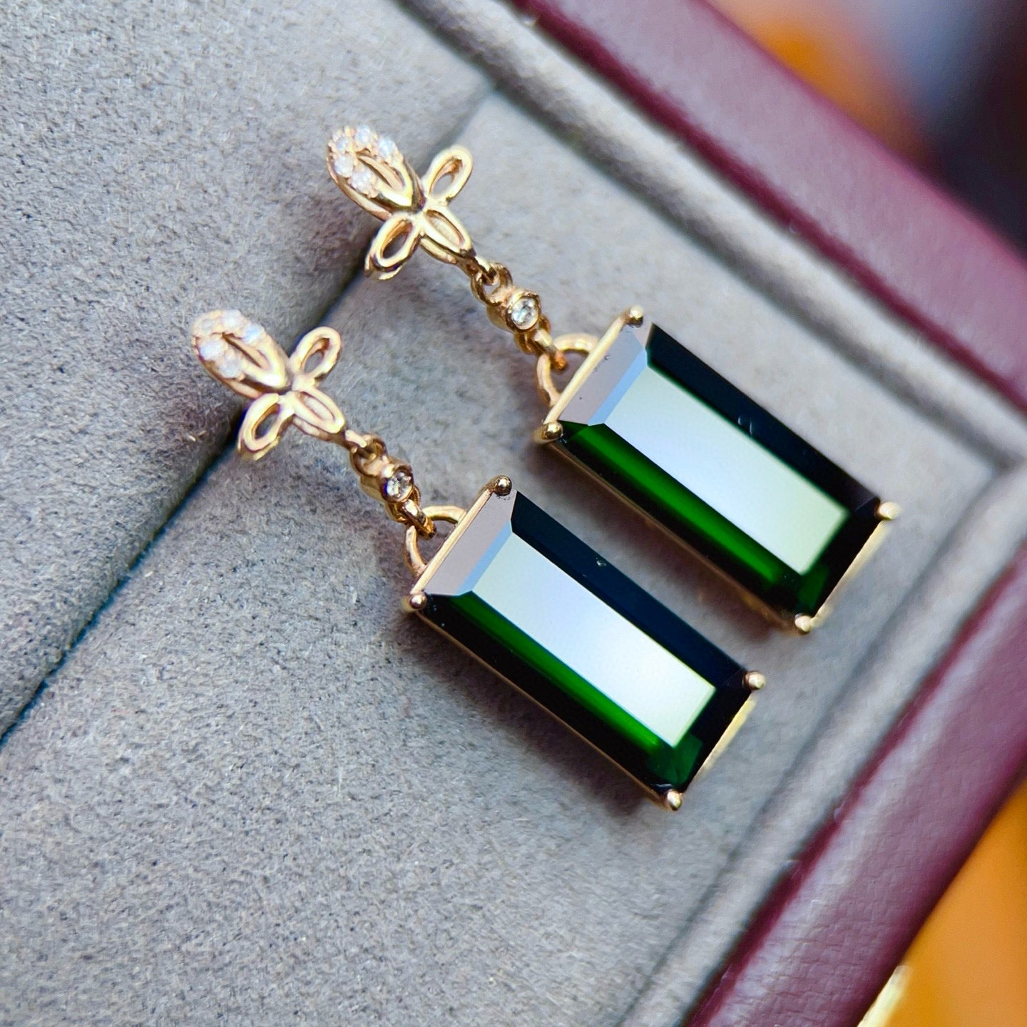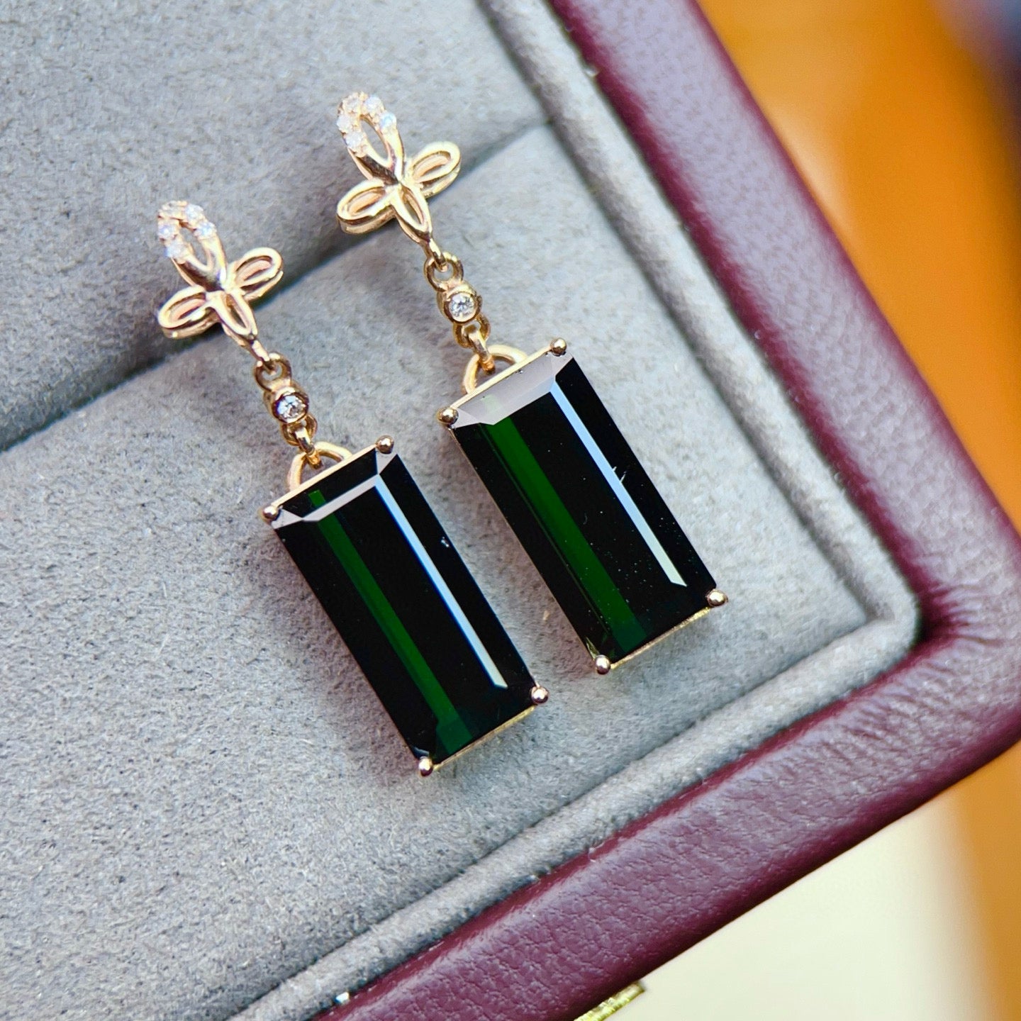 14K GOLD 4.74 CTW NATURAL TOURMALINE & DIAMOND EARRINGS