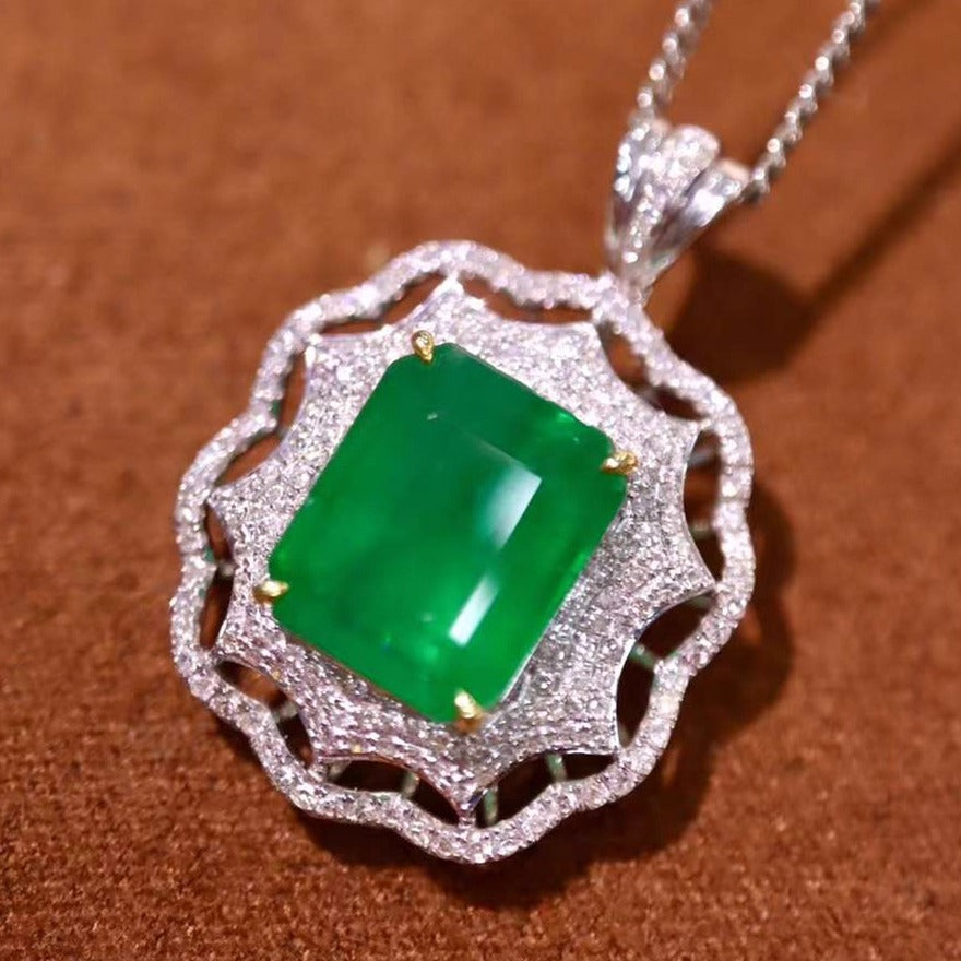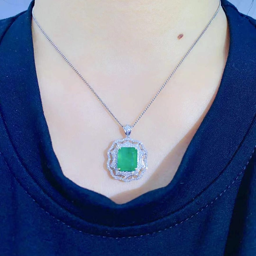 14K GOLD 4.79 CTW VIVID GREEN NATURAL EMERALD & DIAMOND PENDANT( WITHOUT CHAIN )