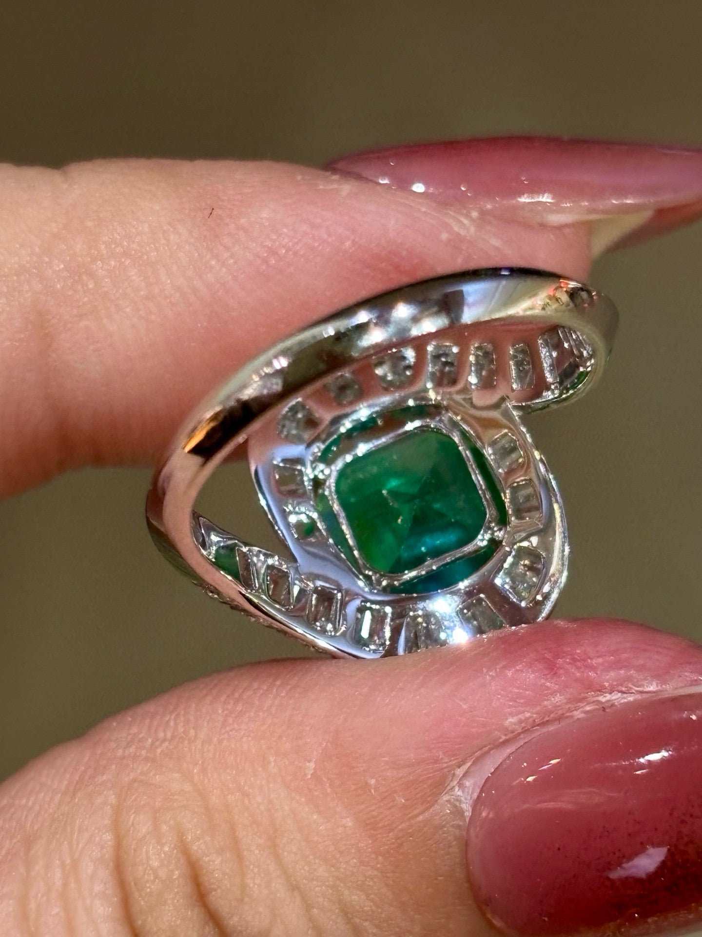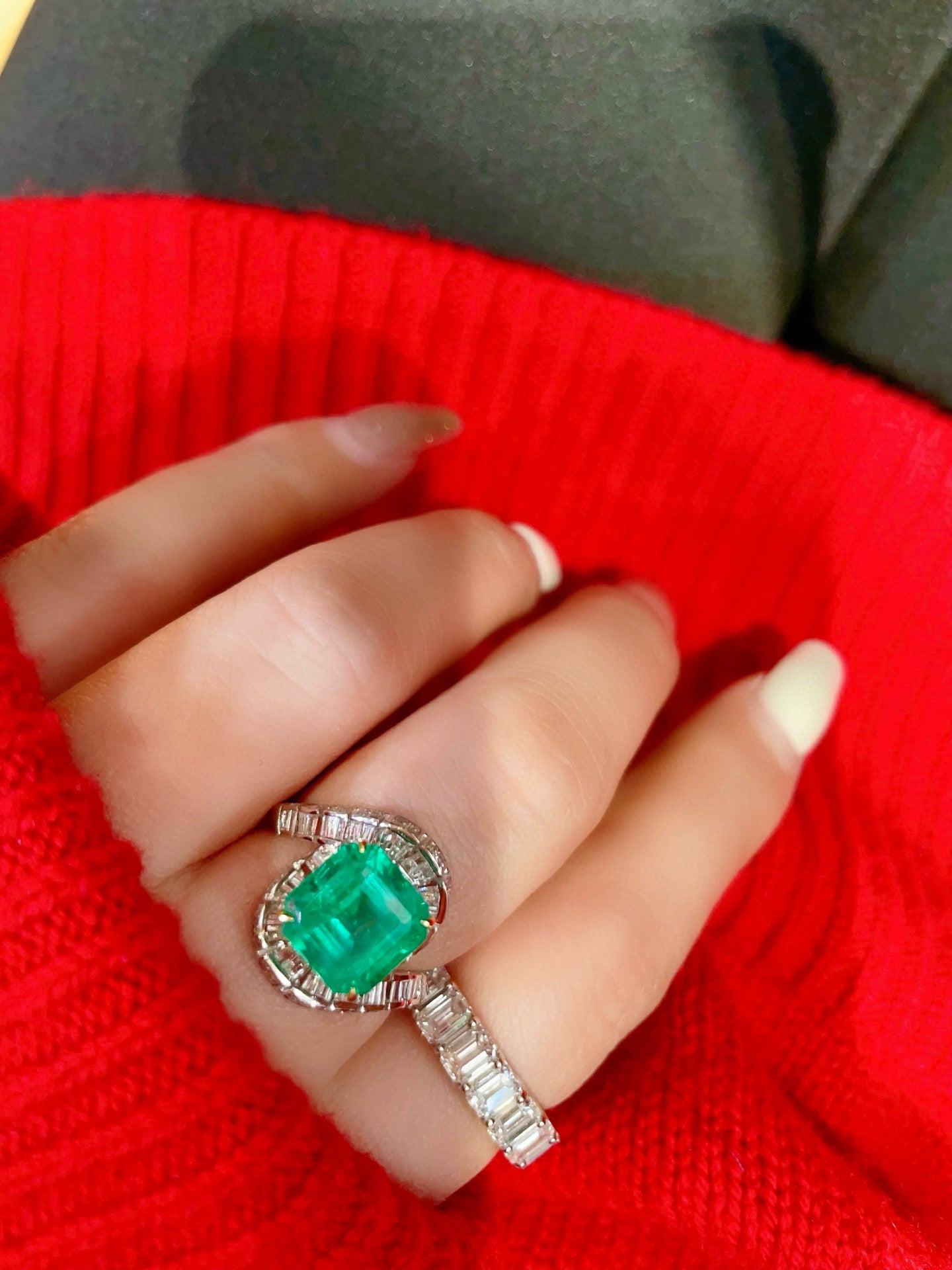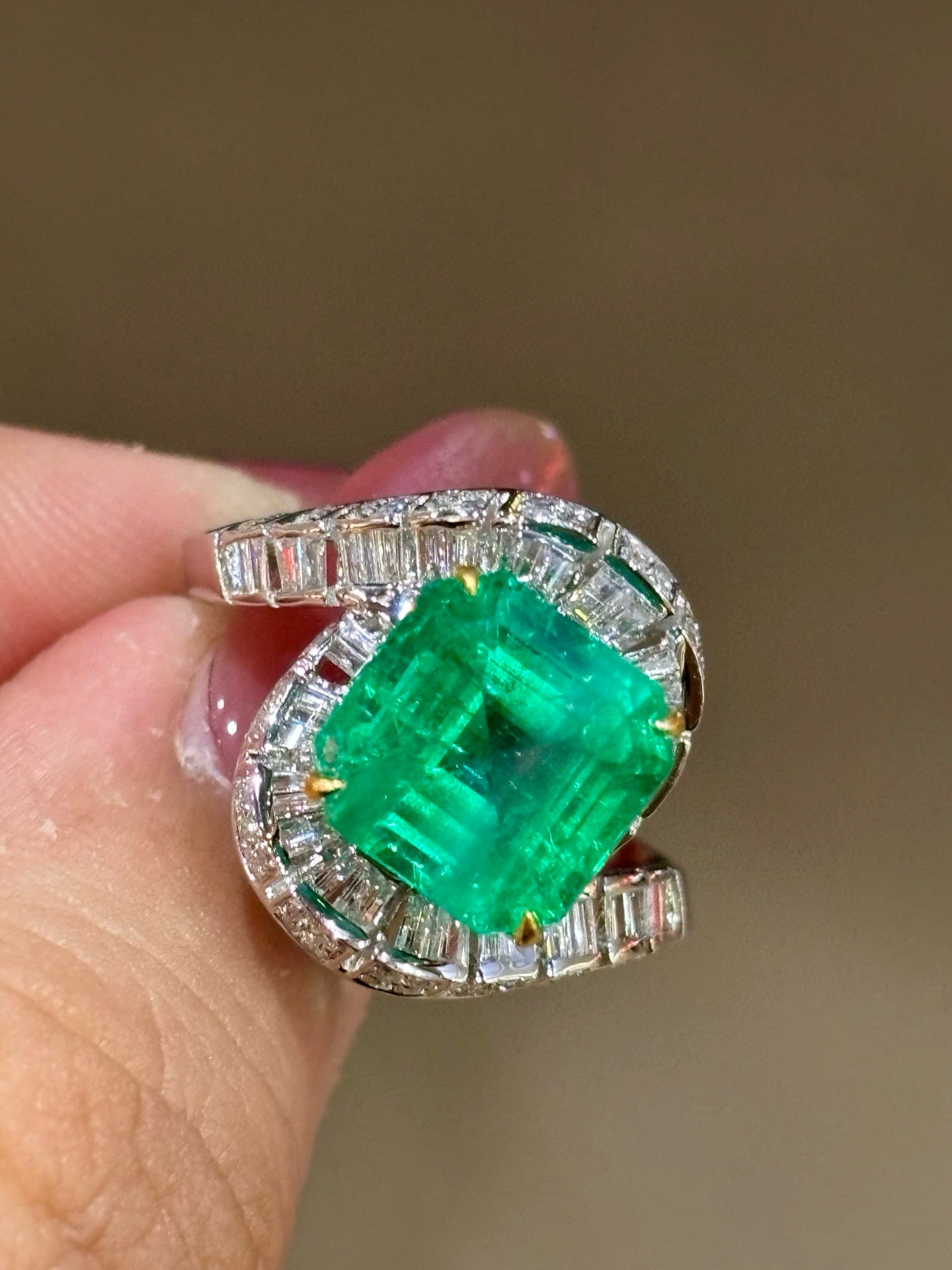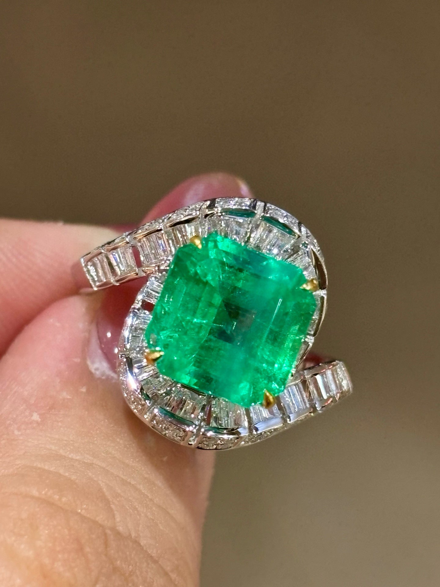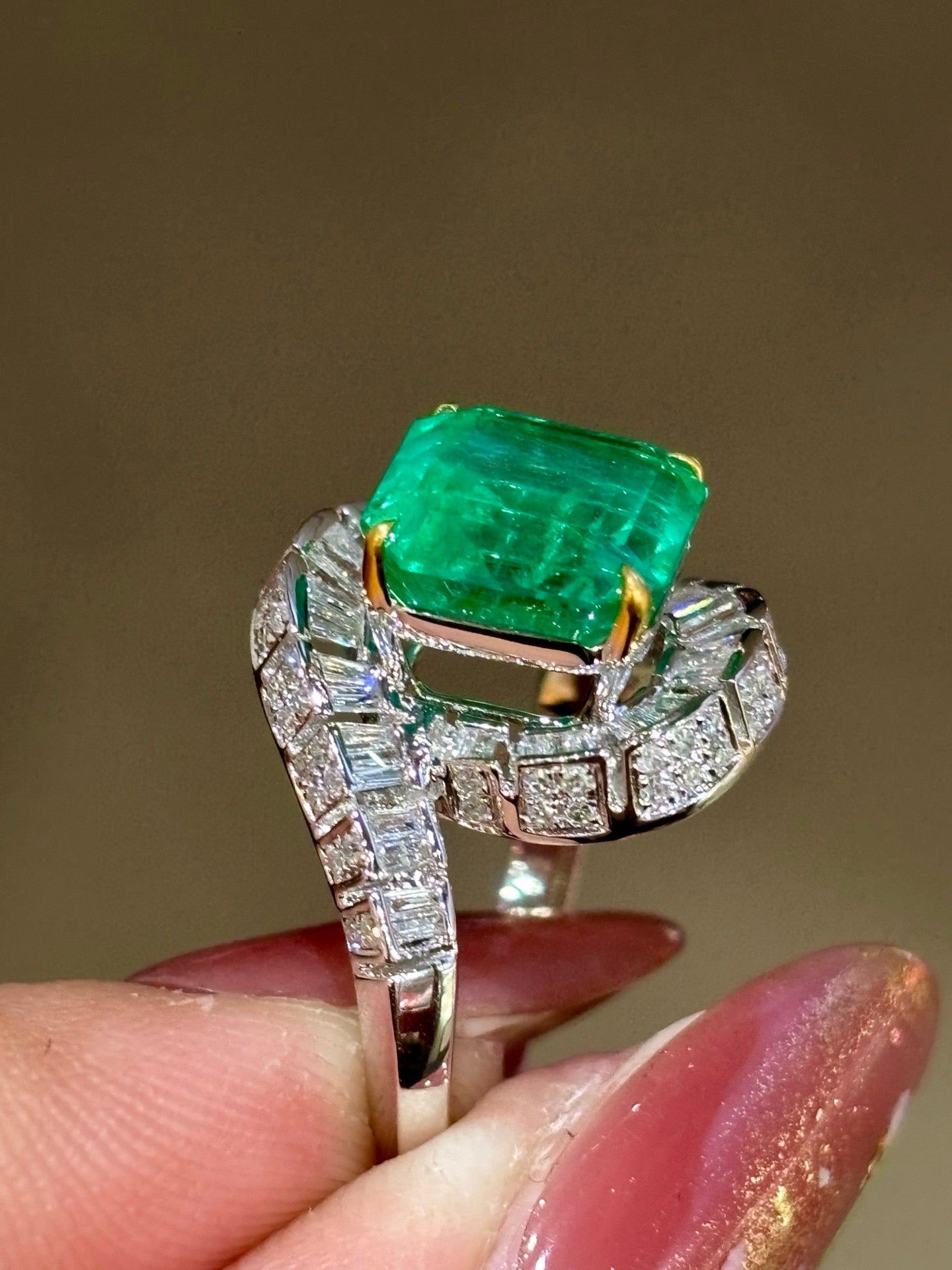 Ref:231027243 // Gold Content:14K Gold // Ring Size:7.25US // // Main Gemstone:Emerald // Shape:Octagonal // Carat Weight:4ct // Color:Green // Treatment:Natural // // Adjacent Gemstone 2 : Diamond // Shape:Multiply // Clarity Grade:VS-SI // Color:H // Treatment:Natural //