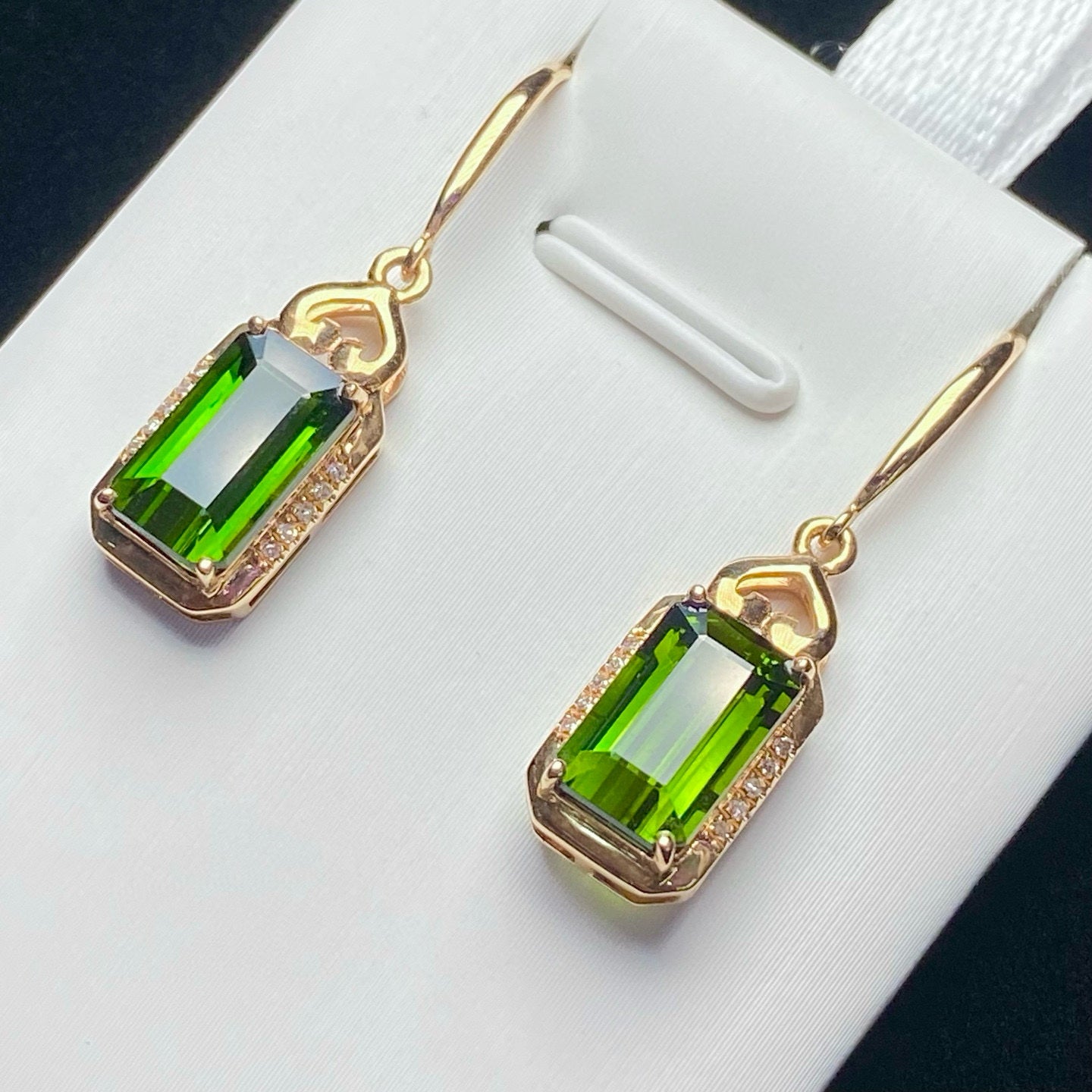 Ref:231025100 // Gold Content:14K Gold // Main Gemstone:Tourmaline // Shape:Octagonal // Carat Weight:4ct // Color:Green // Treatment:Natural // // Adjacent Gemstone 2 : Diamond // Number of stones:20 // Shape:Round // Clarity Grade:VS-SI // Color:H // Treatment:Natural // Cut Grade:G //