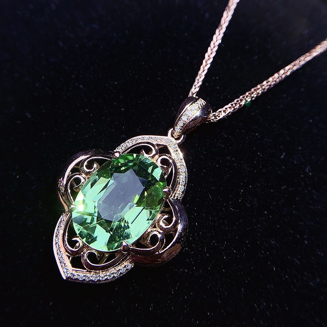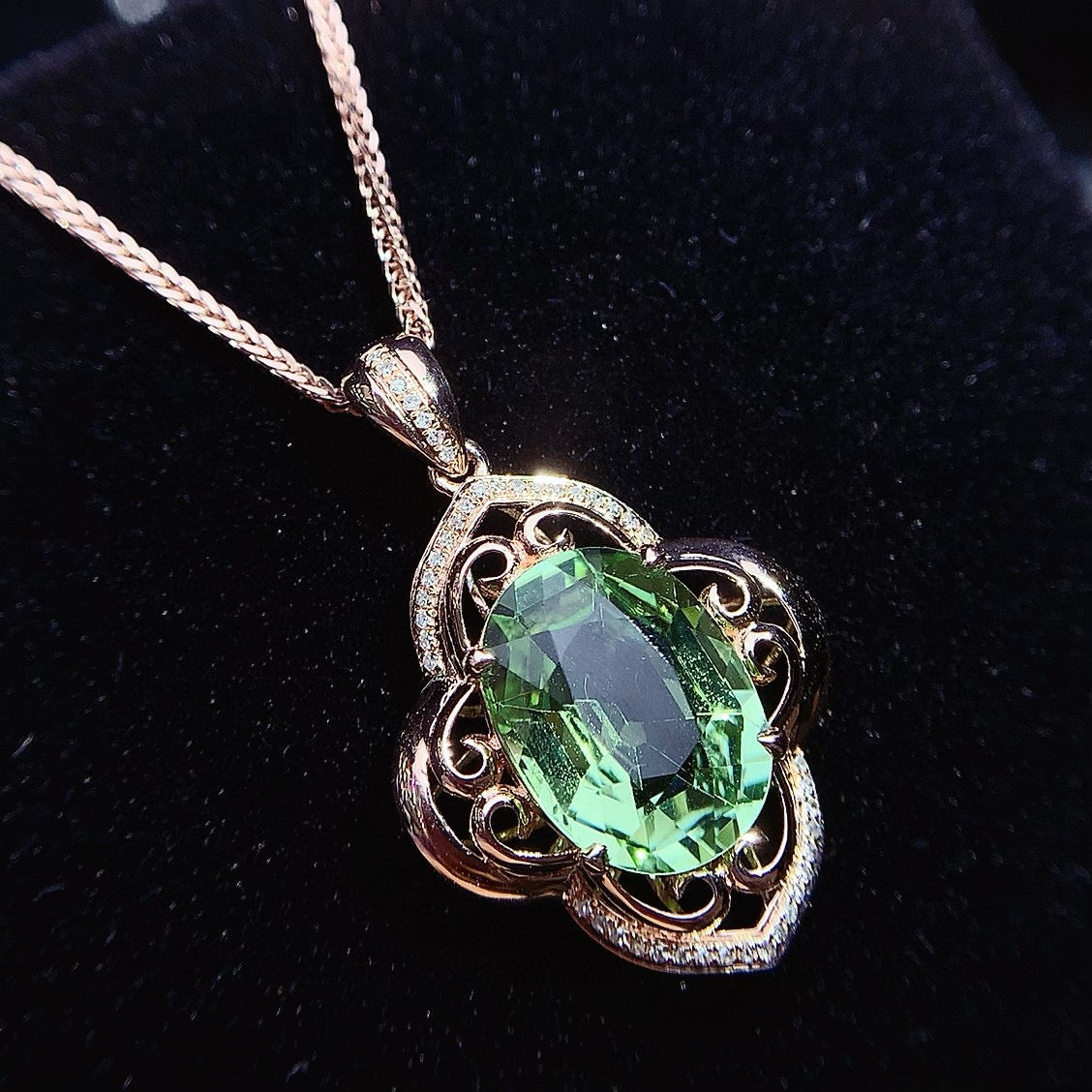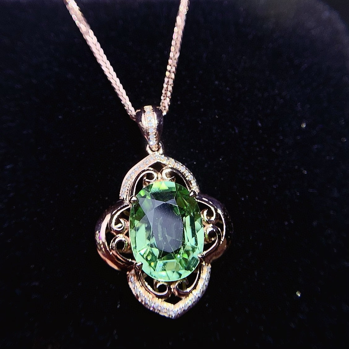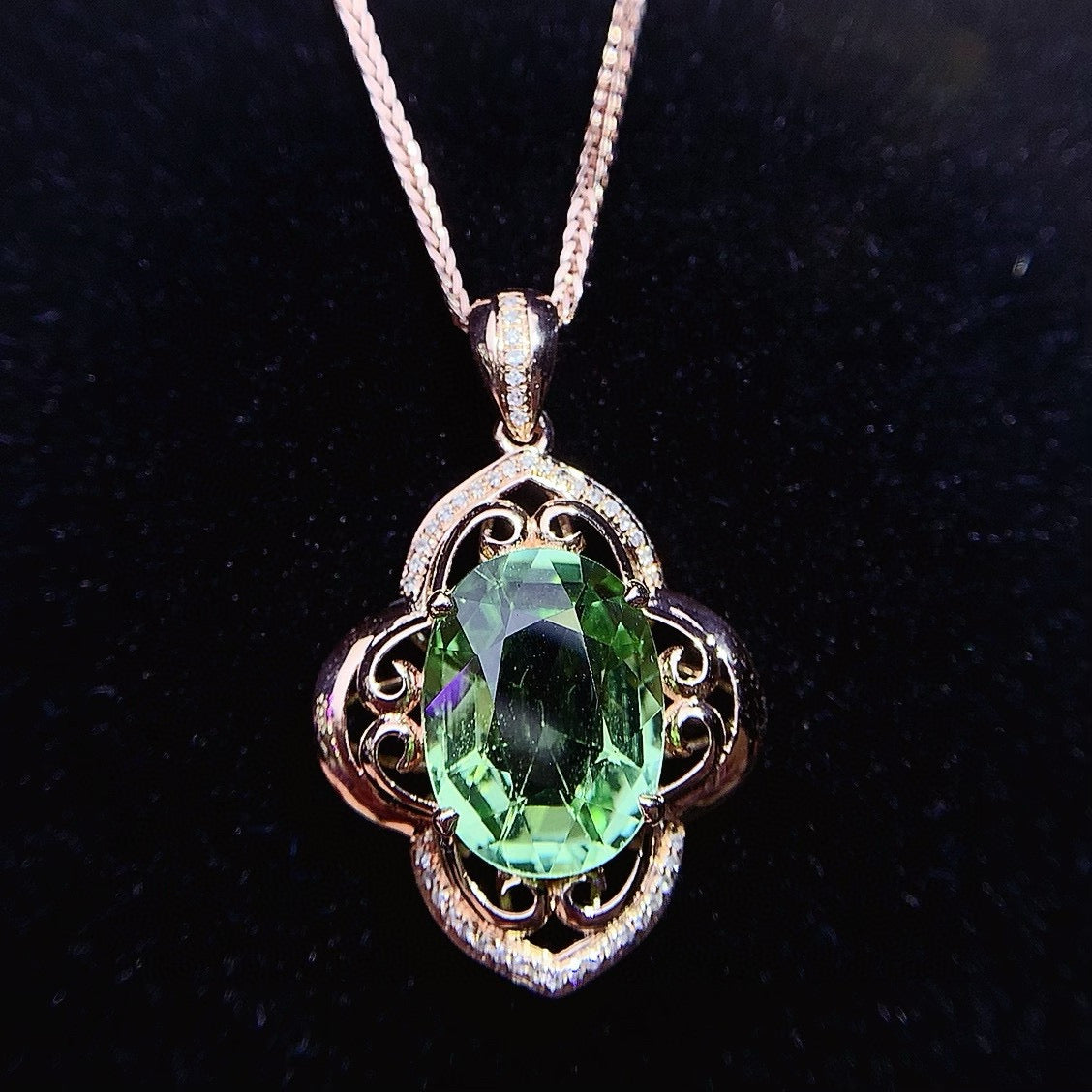 Ref:231027123 // Gold Content:14K Gold // Main Gemstone:Tourmaline // Shape:Oval // Carat Weight:5.00ct // Color:Green // Treatment:Natural // // Adjacent Gemstone 2 : Diamond // Number of stones:45 // Shape:Round // Clarity Grade:VS-SI // Color:H // Treatment:Natural // Cut Grade:G //
