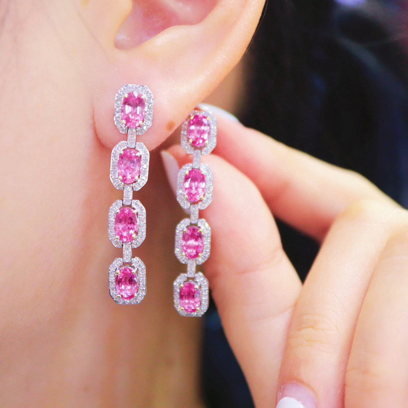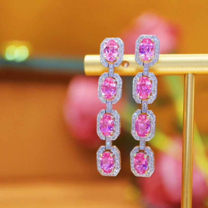 14K GOLD 5.04 CTW NATURAL PADPARADSCHA SAPPHIRE & DIAMOND EARRINGS