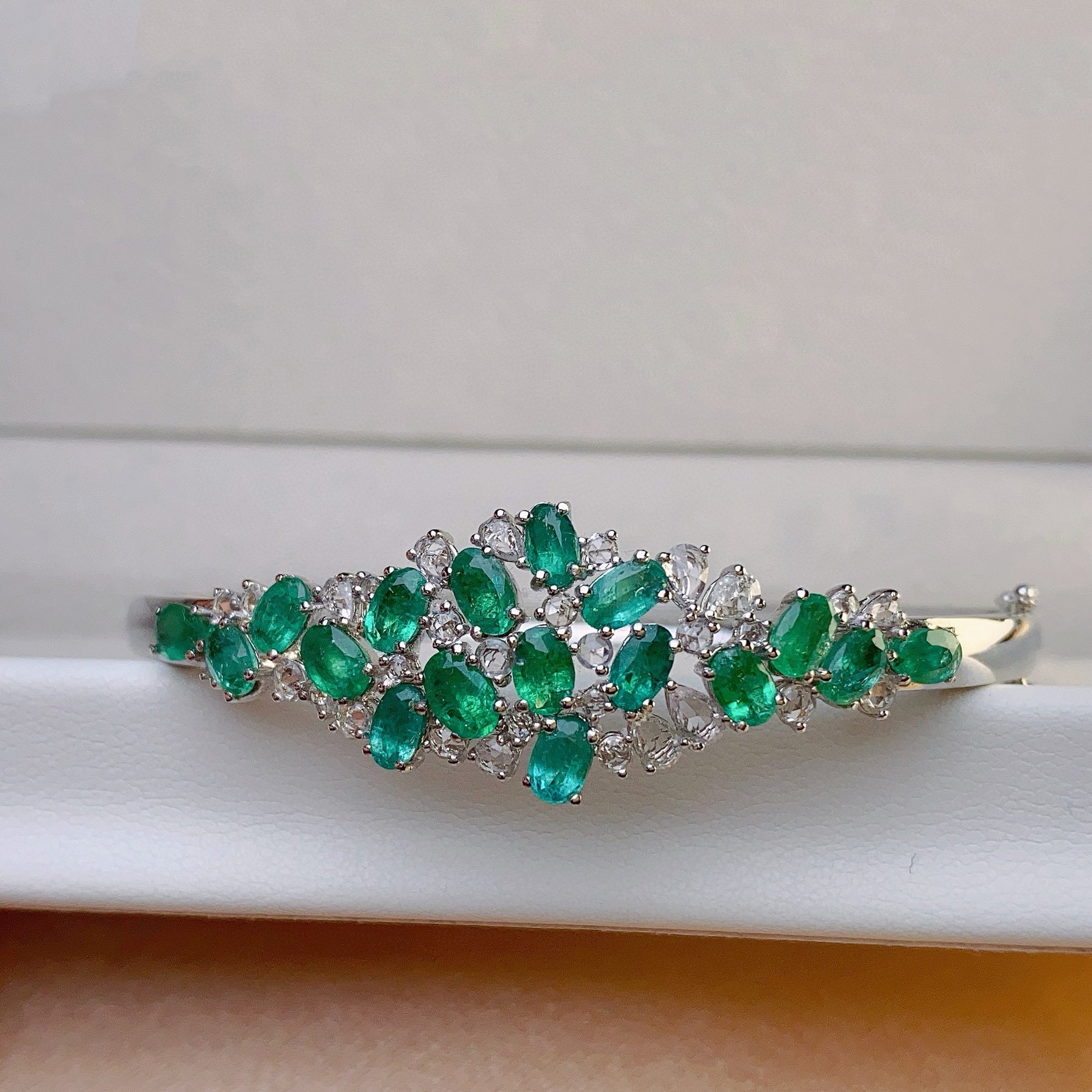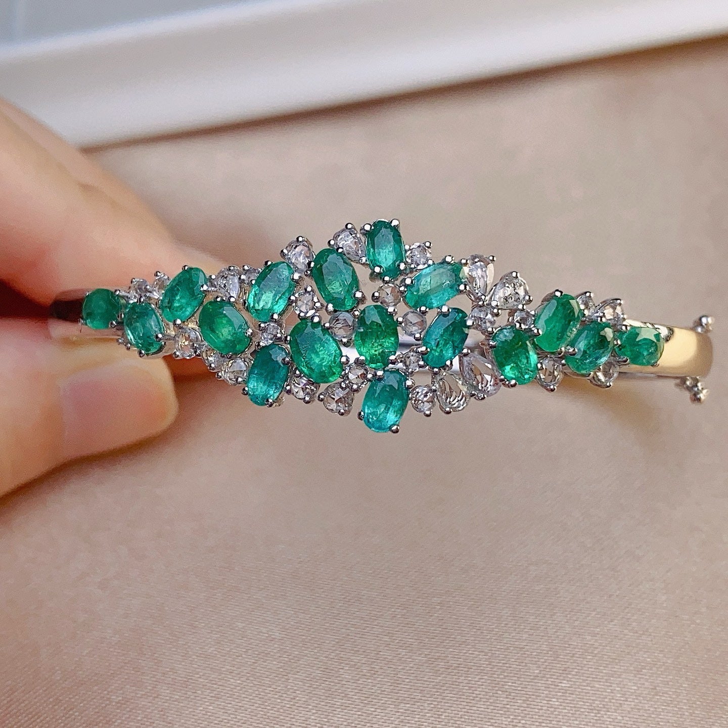 14K GOLD 5.1 CT NATURAL EMERALD & SAPPHIRE BANGLE