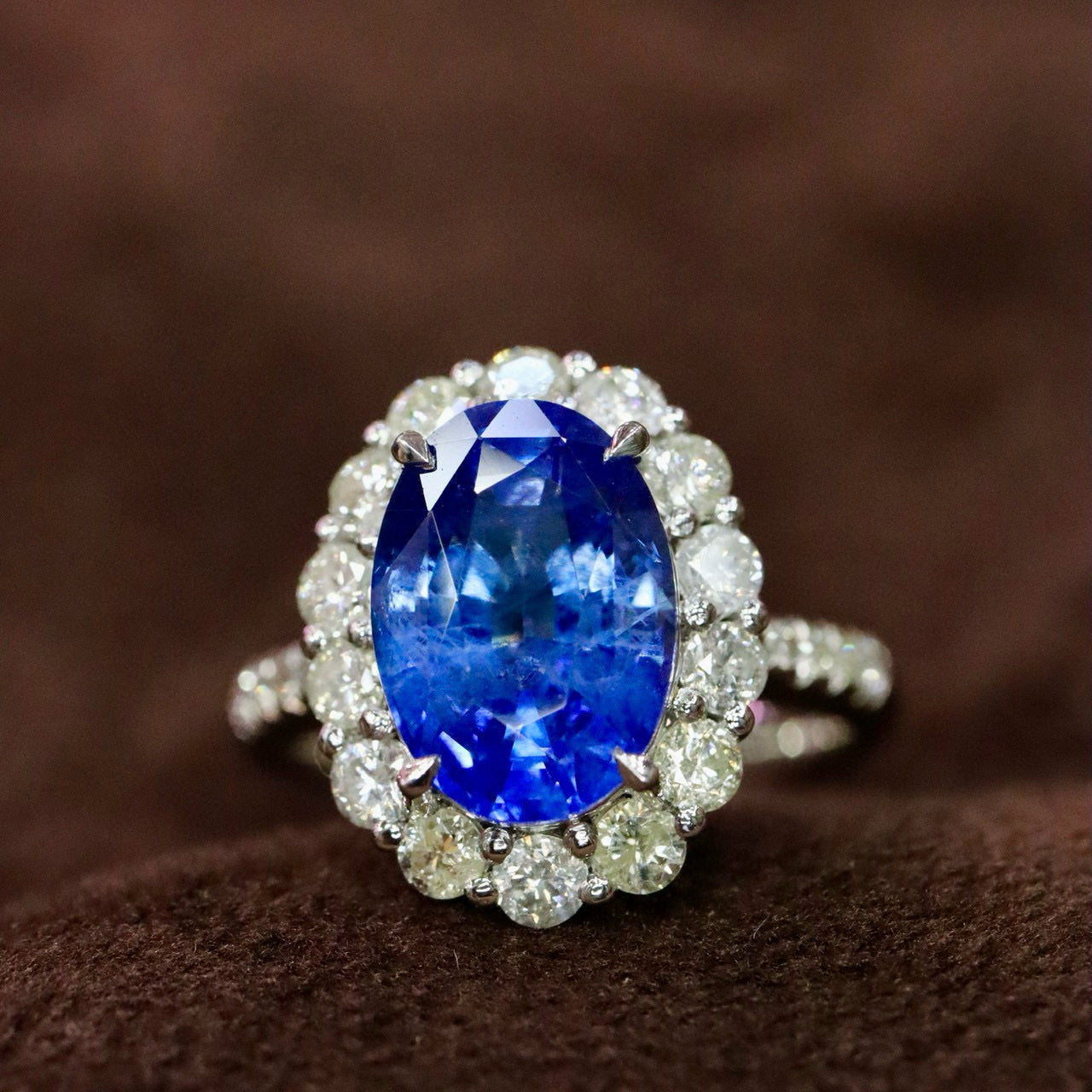 Ref:231023162 // Gold Content:14K Gold // Ring Size:7.25US // // Main Gemstone:Sapphire // Shape:Oval // Carat Weight:4.34ct // Color:Blue // Treatment:Natural // // Adjacent Gemstone 2 : Diamond // Shape:Round // Carat Weight:0.85ct // Clarity Grade:VS-SI // Color:H // Treatment:Natural // Cut Grade:G //