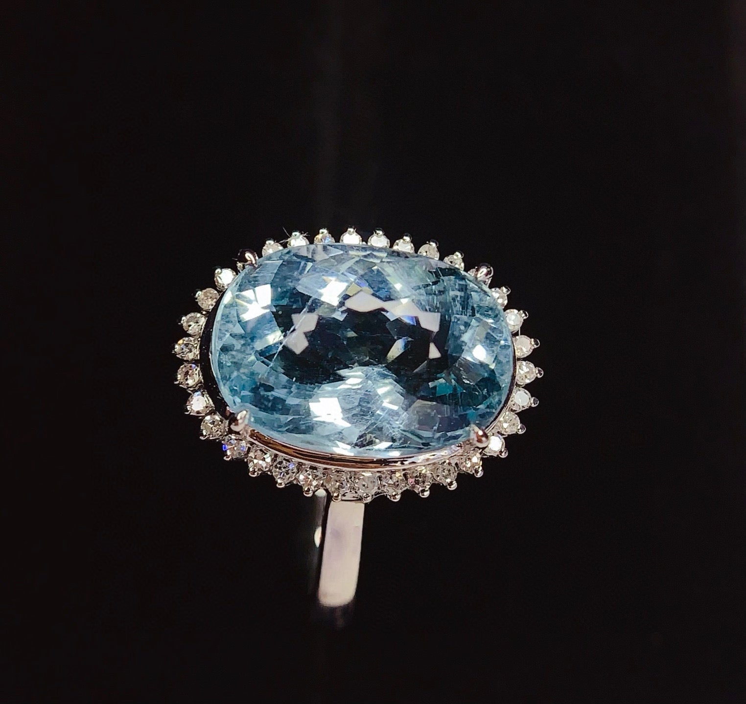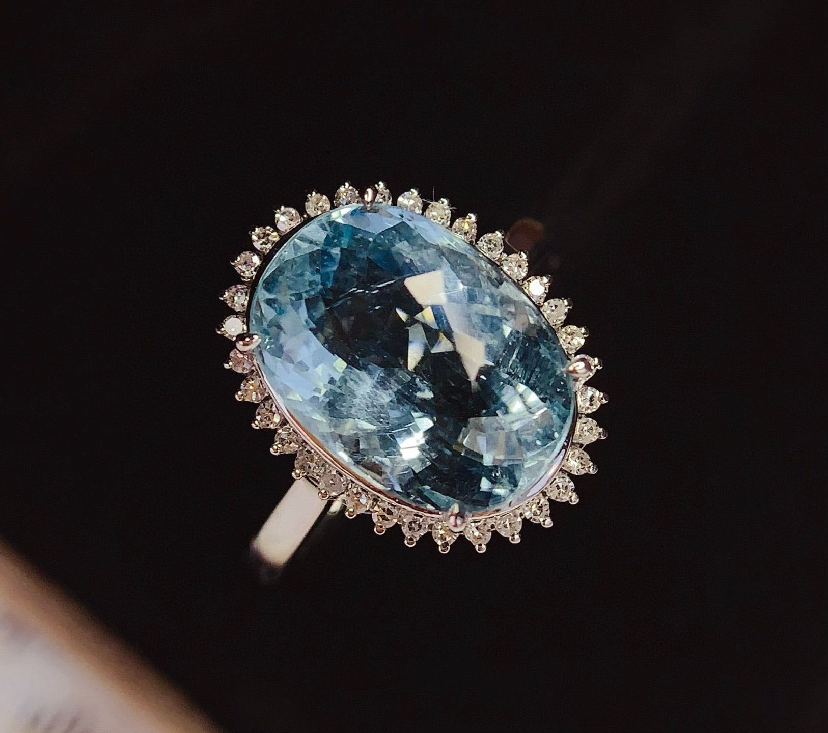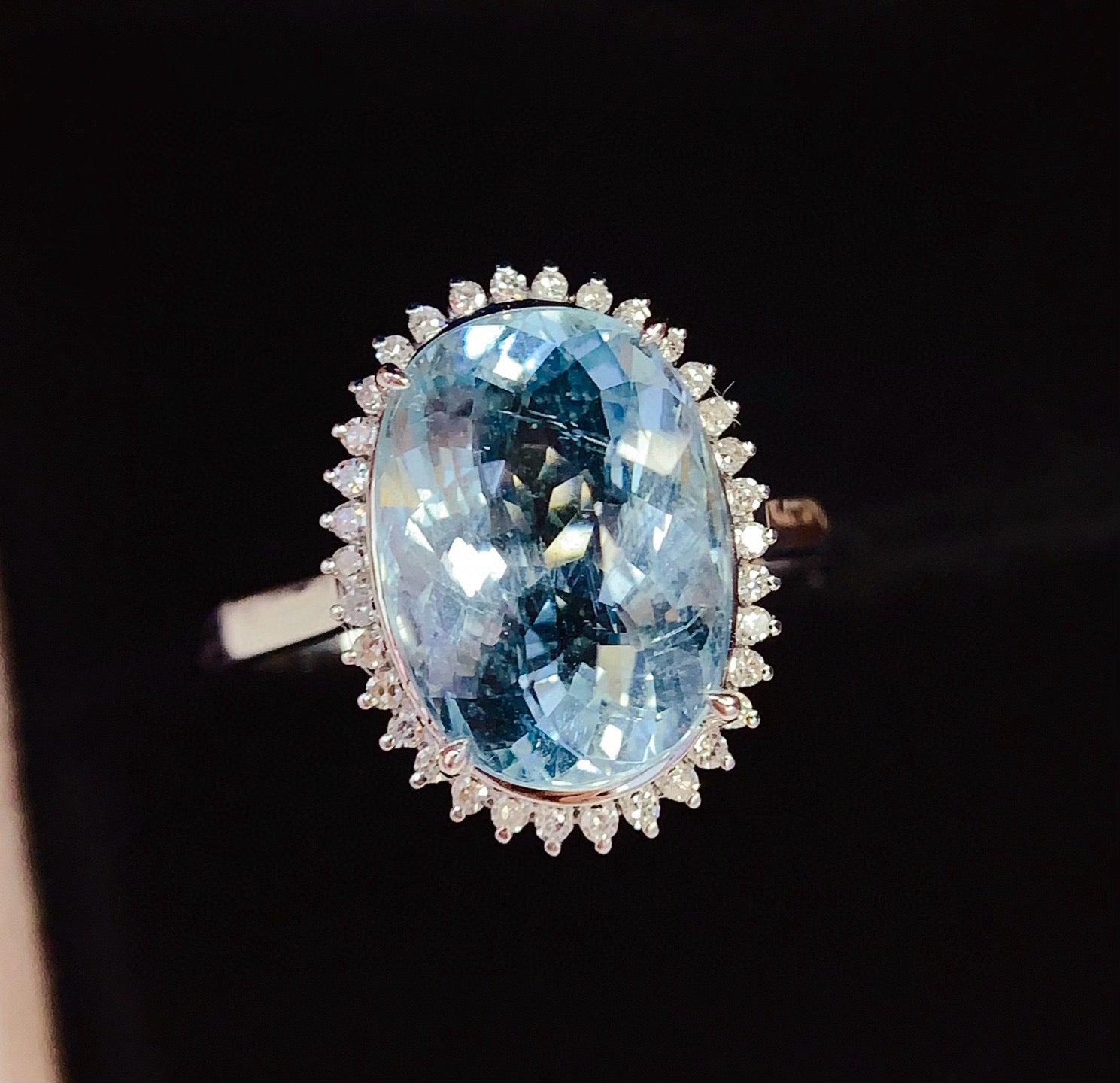 Ref:231025177 // Gold Content:14K Gold // Ring Size:7.25US // // Main Gemstone:Aquamarine // Shape:Oval // Carat Weight:5.22ct // Color:Blue // Treatment:Natural // // Adjacent Gemstone 2 : Diamond // Number of stones:34 // Shape:Round // Clarity Grade:VS-SI // Color:H // Treatment:Natural // Cut Grade:G //