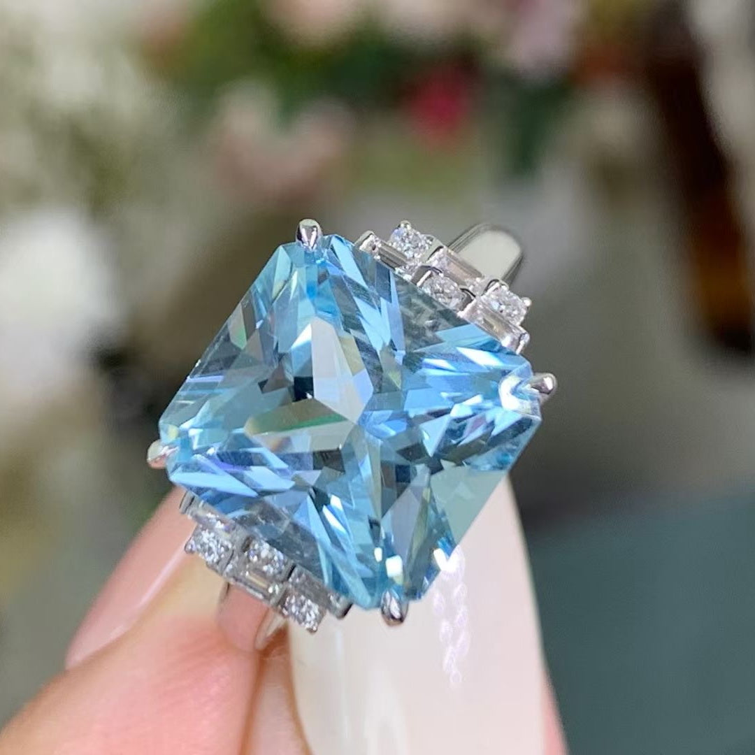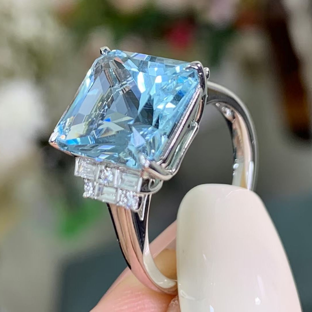Ref:231021216 // Gold Content:14K Gold // Ring Size:7.25US // // Main Gemstone:Aquamarine // Shape:Octagonal // Carat Weight:5.03ct // Color:Santa Maria Color // Treatment:Natural // // Adjacent Gemstone 2 : Diamond // Shape:Multiply // Carat Weight:0.20ct // Clarity Grade:VS-SI // Color:H // Treatment:Natural //