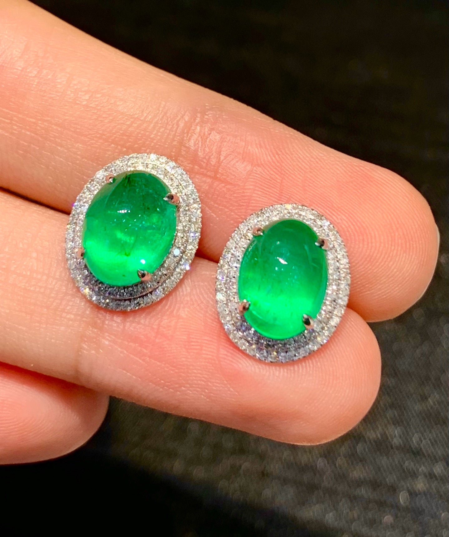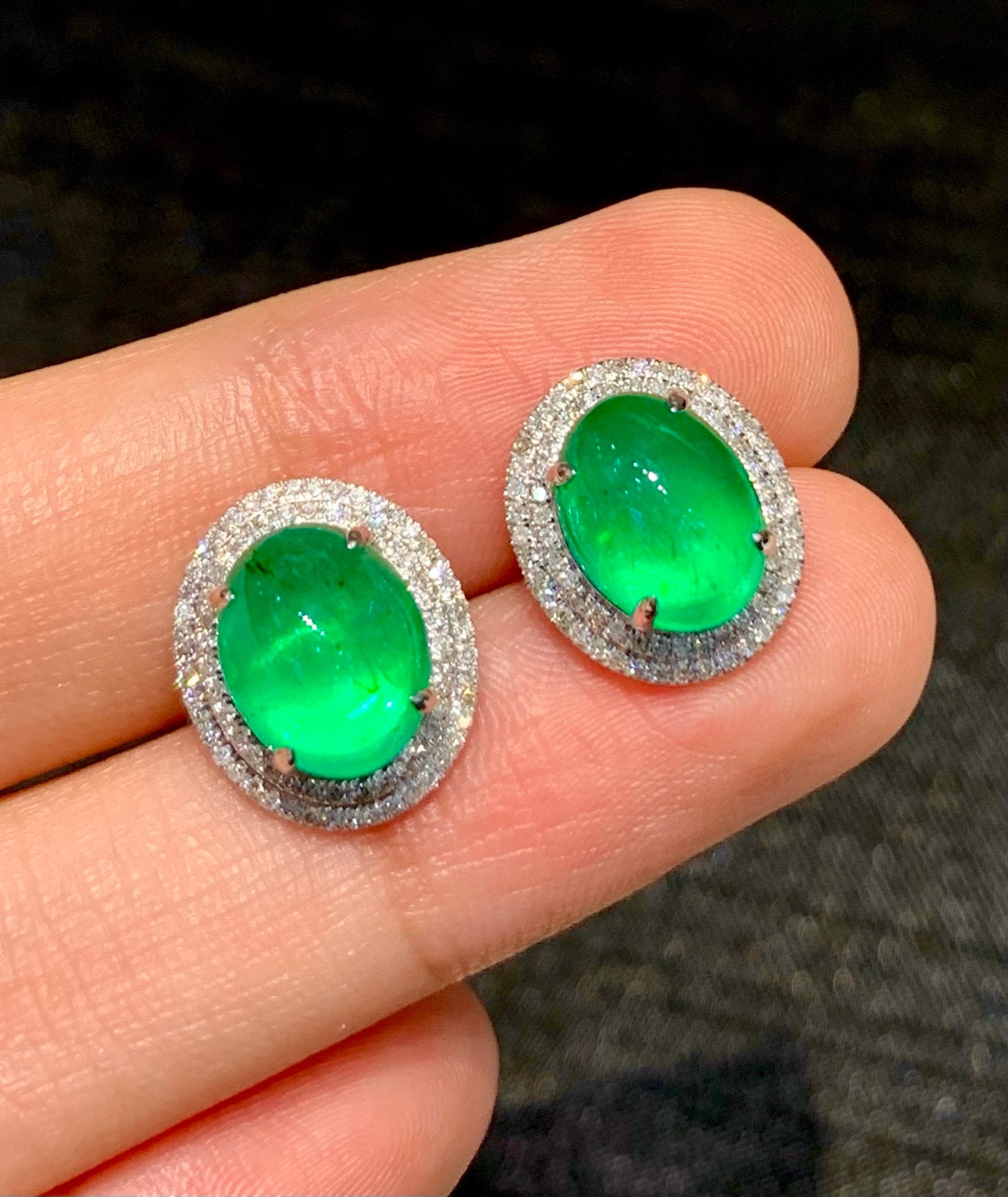 14K GOLD 5.25 CT NATURAL EMERALD & DIAMOND EARRINGS
