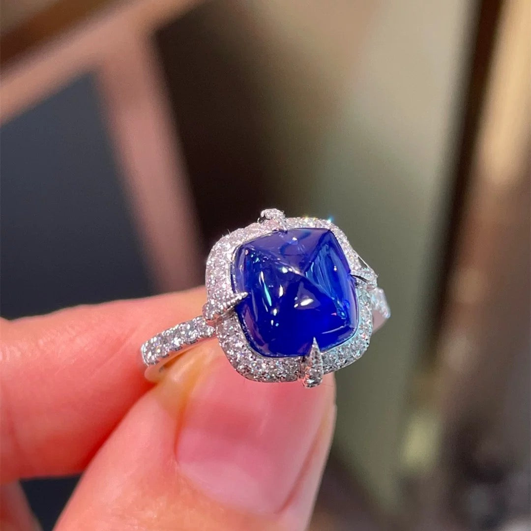 Ref:231025011 // Gold Content:14K Gold // Ring Size:7.25US // // Main Gemstone:Sapphire // Shape:Suger-Loaf // Carat Weight:4.76ct // Color:Blue // Treatment:Natural // // Adjacent Gemstone 2 : Diamond // Shape:Round // Carat Weight:0.59ct // Clarity Grade:VS-SI // Color:H // Treatment:Natural // Cut Grade:G //