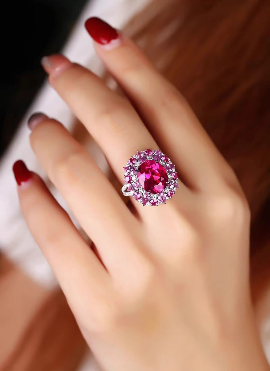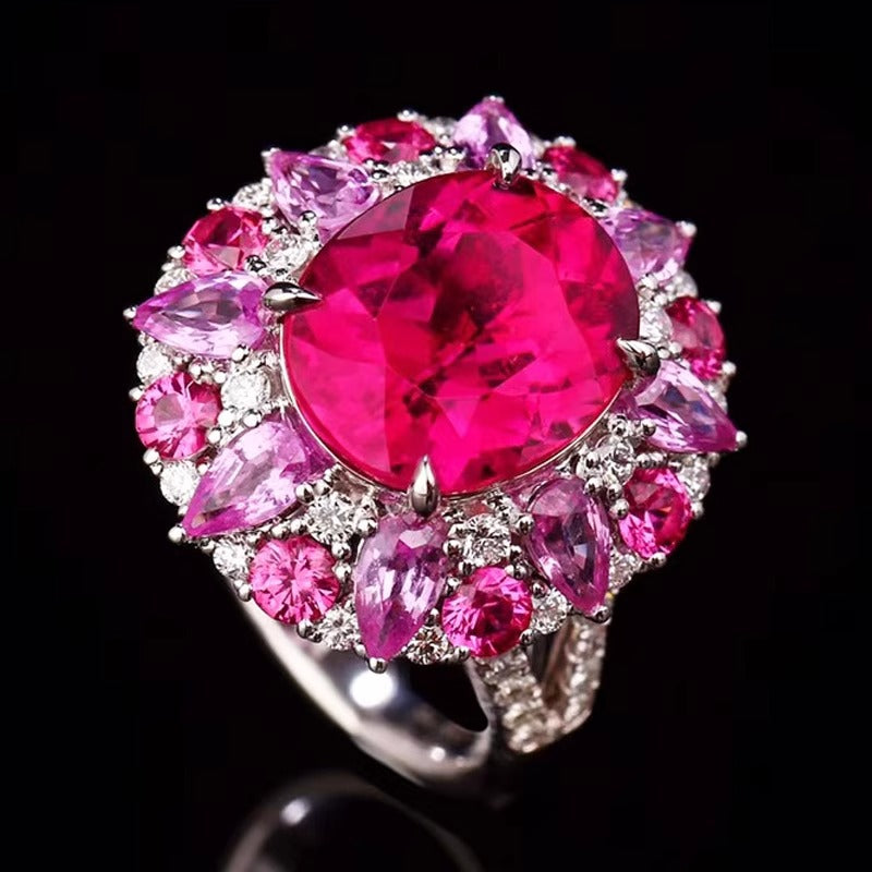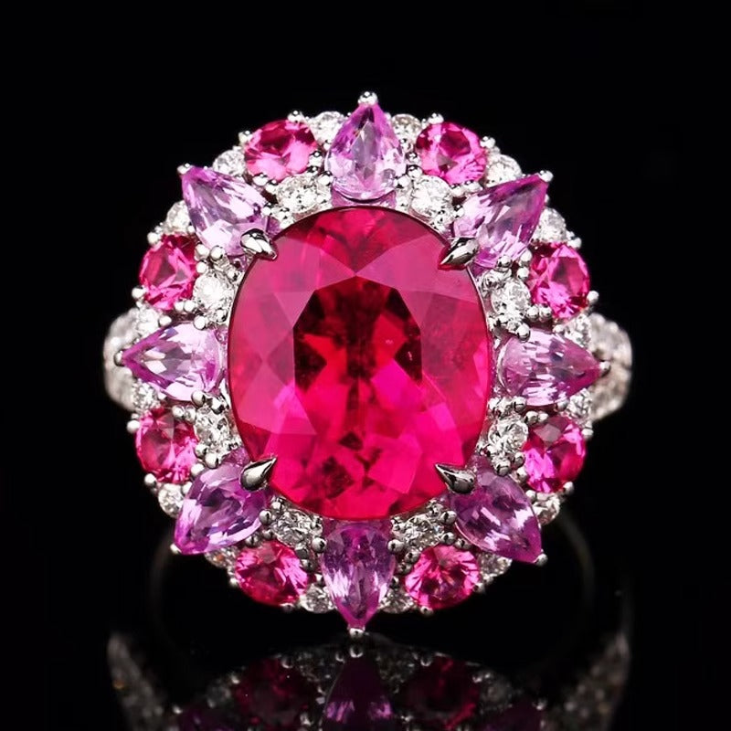 Ref:231021059 // Gold Content:14K Gold // Ring Size:7.25US // // Main Gemstone:Tourmaline // Shape:Oval // Carat Weight:4.86ct // Color:Red // Treatment:Natural // // Adjacent Gemstone 2 : Diamond // Shape:Round // Carat Weight:0.63ct // Clarity Grade:VS-SI // Color:H // Treatment:Natural // Cut Grade:G //