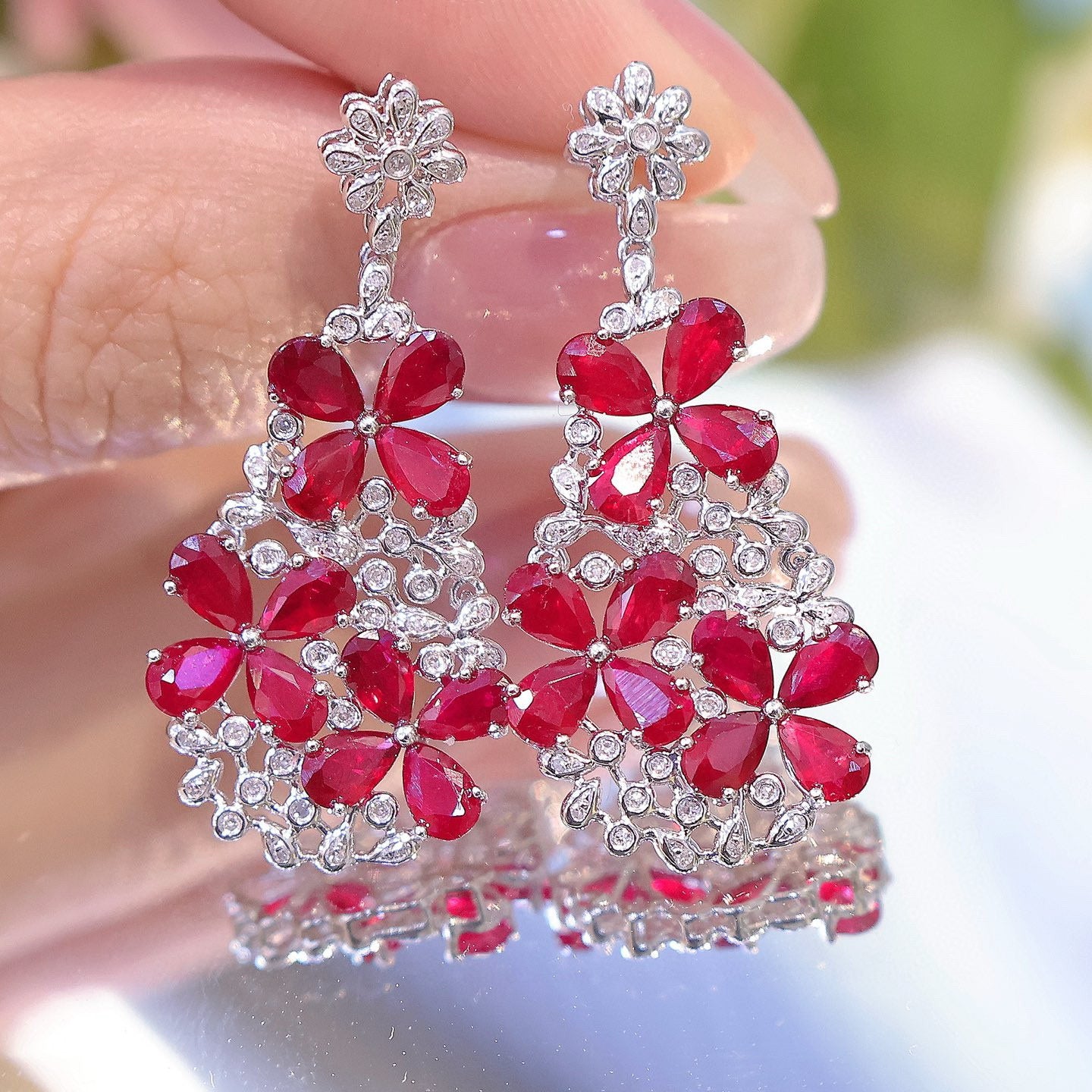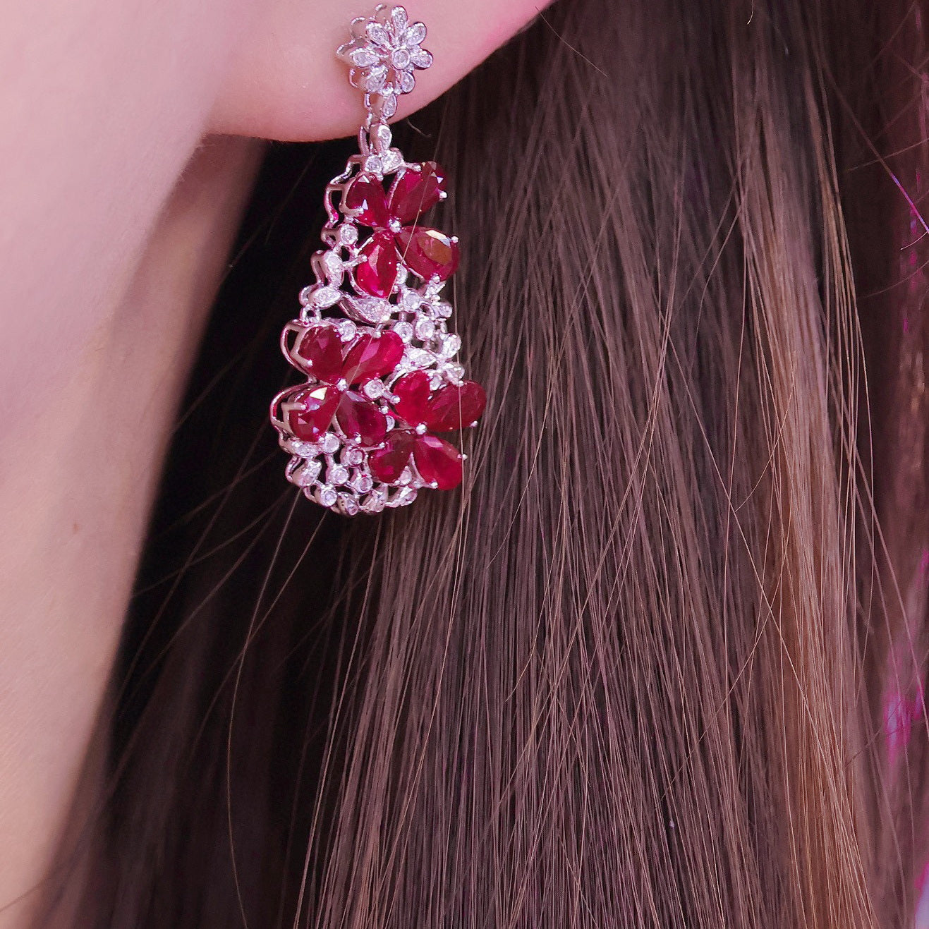14K GOLD 5.6 CT NATURAL RUBY & DIAMOND EARRINGS