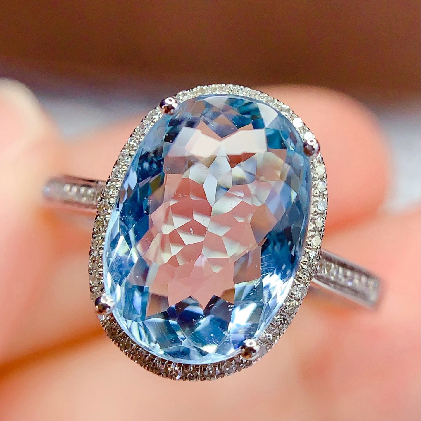 Ref:231021244 // Gold Content:14K Gold // Ring Size:7.25US // // Main Gemstone:Aquamarine // Shape:Oval // Carat Weight:5.65ct // Color:Blue // Treatment:Natural // // Adjacent Gemstone 2 : Diamond // Number of stones:61 // Shape:Round // Clarity Grade:VS-SI // Color:H // Treatment:Natural // Cut Grade:G //