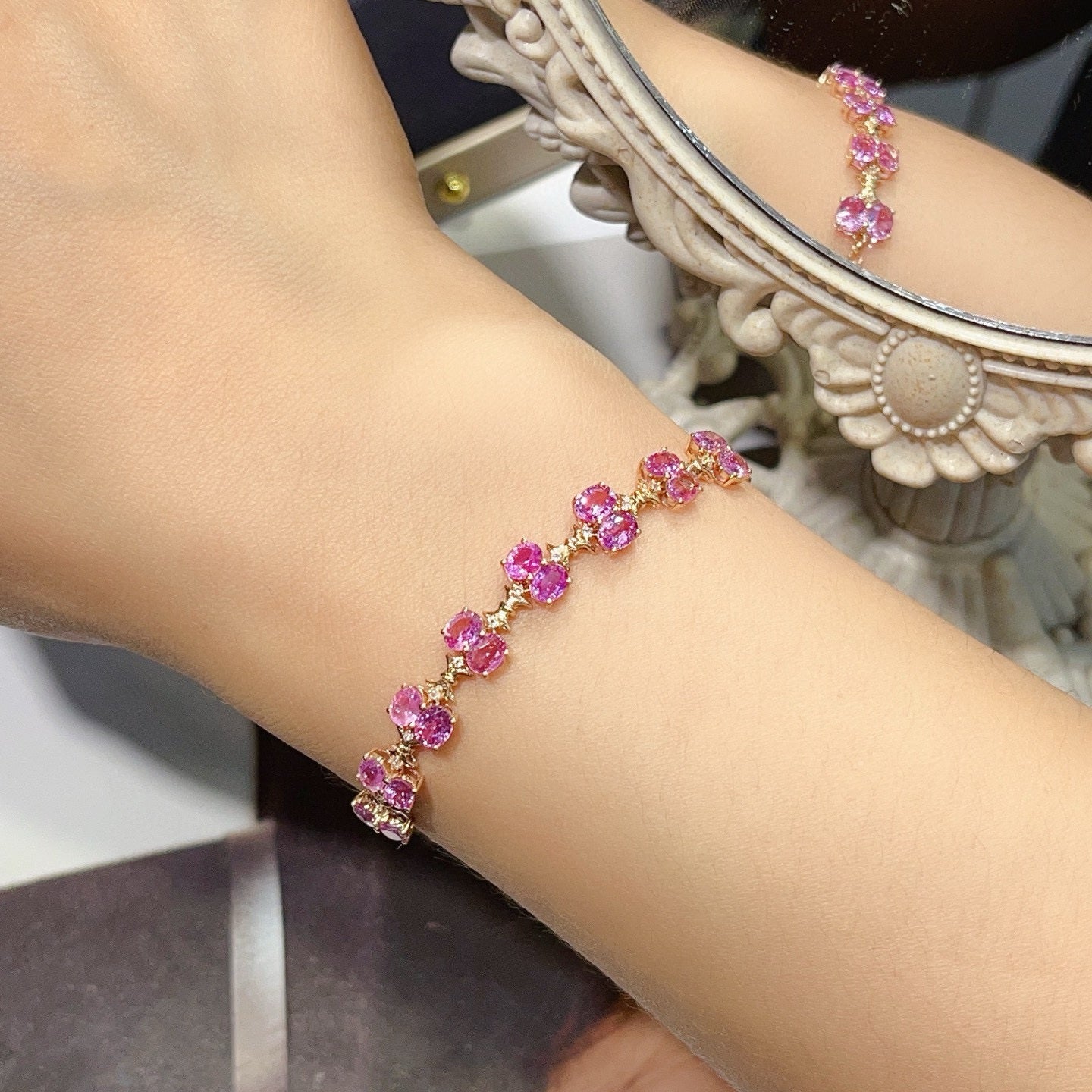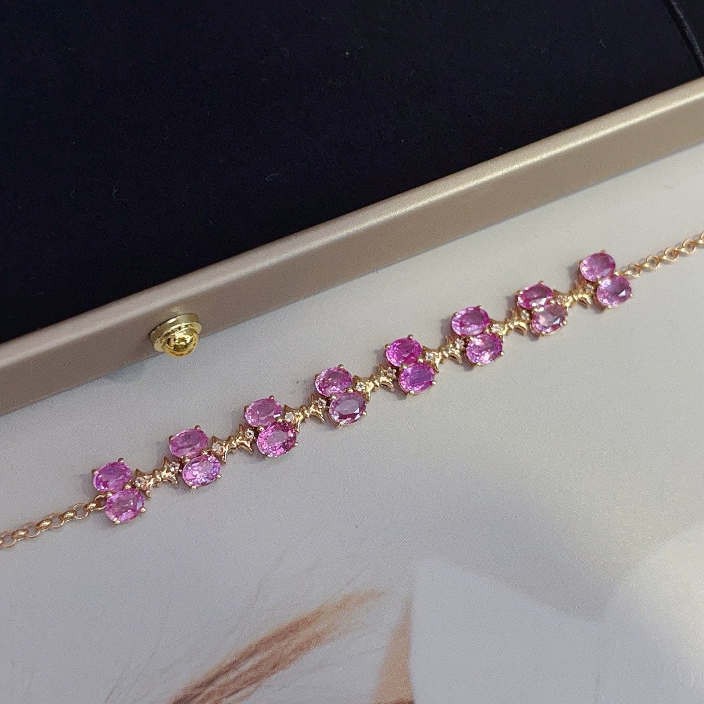 14K GOLD 6.00 CT NATURAL PADPARADSCHA SAPPHIRE & SAPPHIRE BRACELET