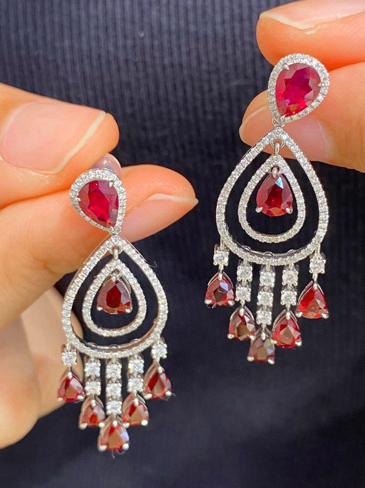 Ref:231019110 // Gold Content:14K Gold // Main Gemstone:Ruby // Shape:Pear // Carat Weight:5.32ct // Color:Red // Treatment:Natural // // Adjacent Gemstone 2 : Diamond // Shape:Round // Carat Weight:1.1ct // Clarity Grade:VS-SI // Color:H // Treatment:Natural // Cut Grade:G //