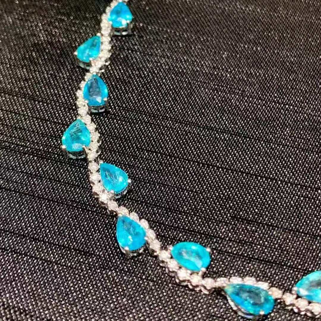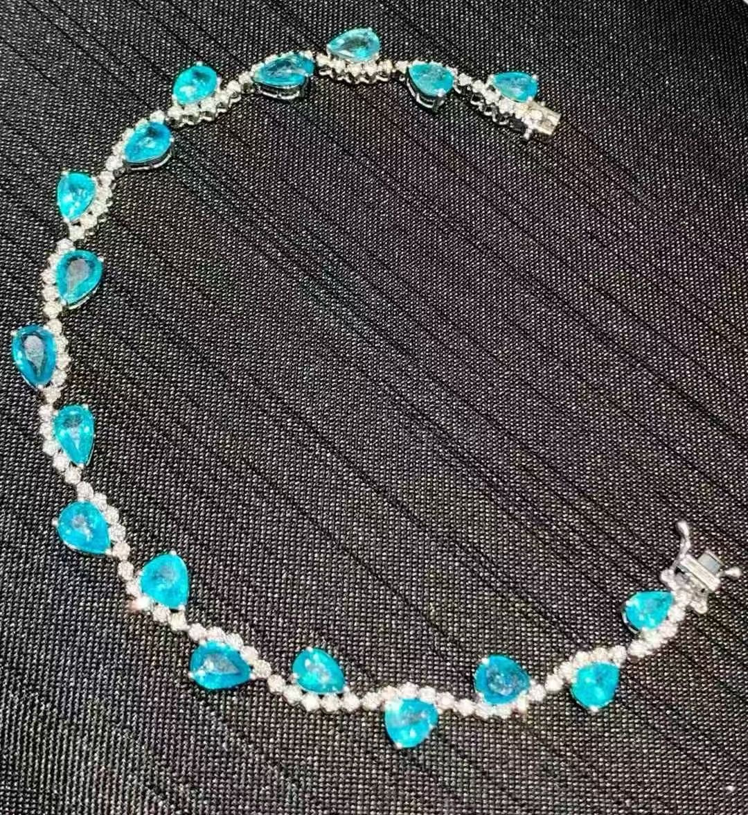Ref:231019091 // Gold Content:14K Gold // Main Gemstone:Paraiba Tourmaline // Shape:Pear // Carat Weight:6.5ct // Color:Neon Blue // Treatment:Natural // // Adjacent Gemstone 2 : Diamond // Shape:Round // Clarity Grade:VS-SI // Color:H // Treatment:Natural // Cut Grade:G //