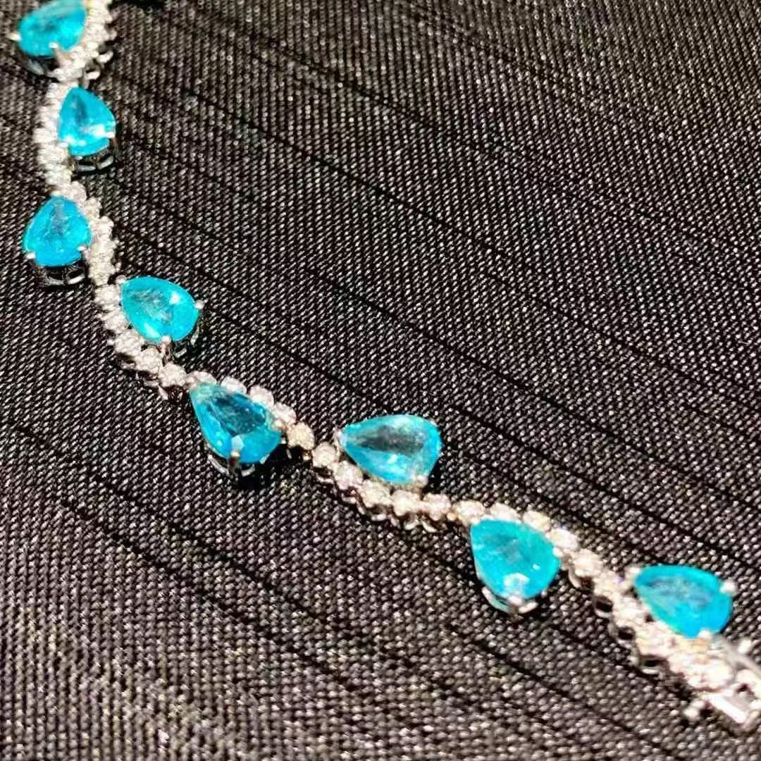 14K GOLD 6.5 CT NATURAL PARAIBA TOURMALINE & DIAMOND BRACELET