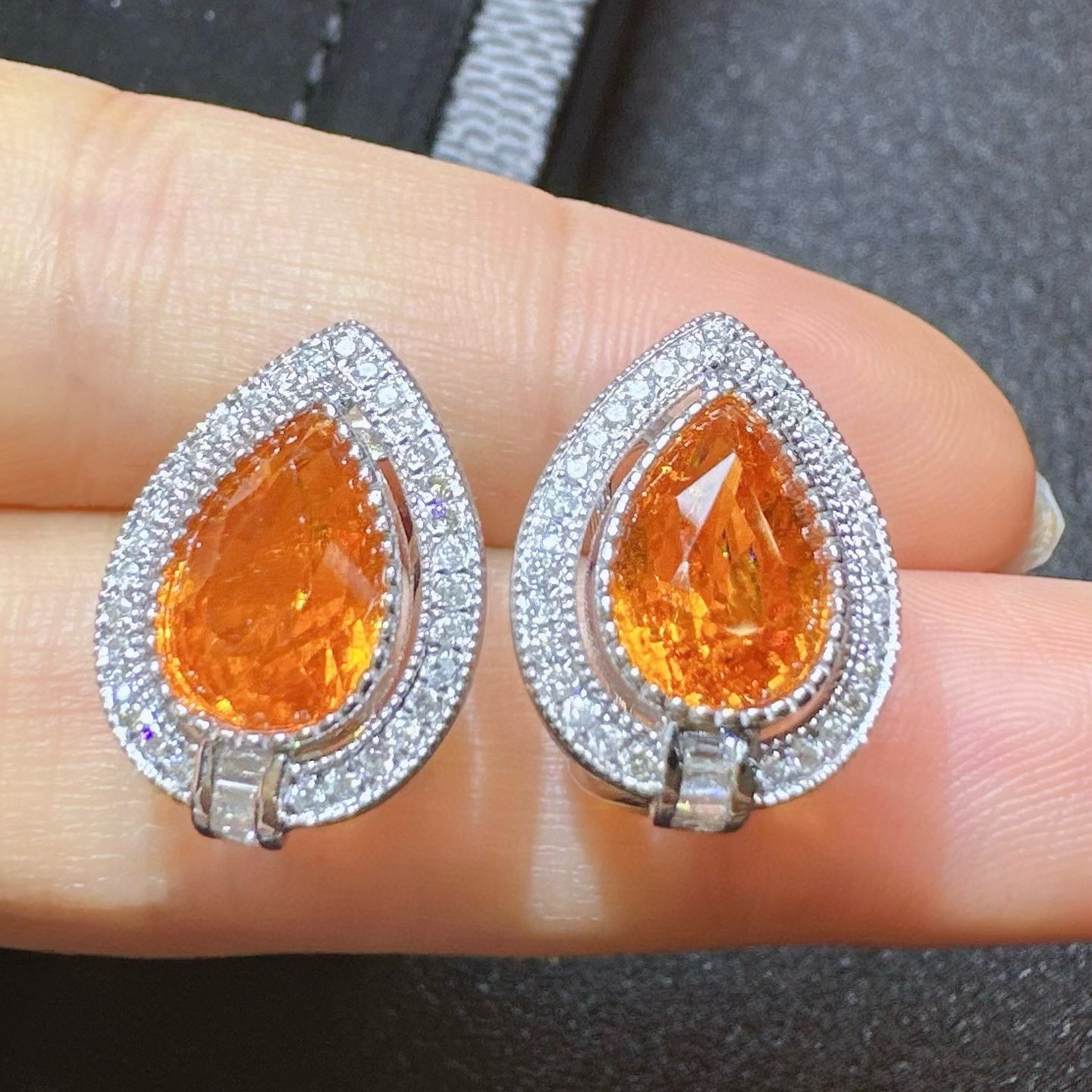 Ref:231023156 // Gold Content:14K Gold // Main Gemstone:Spessartine // Shape:Pear // Carat Weight:6.12ct // Color:Orange // Treatment:Natural // // Adjacent Gemstone 2 : Diamond // Shape:Round // Carat Weight:0.38ct // Clarity Grade:VS-SI // Color:H // Treatment:Natural // Cut Grade:G //