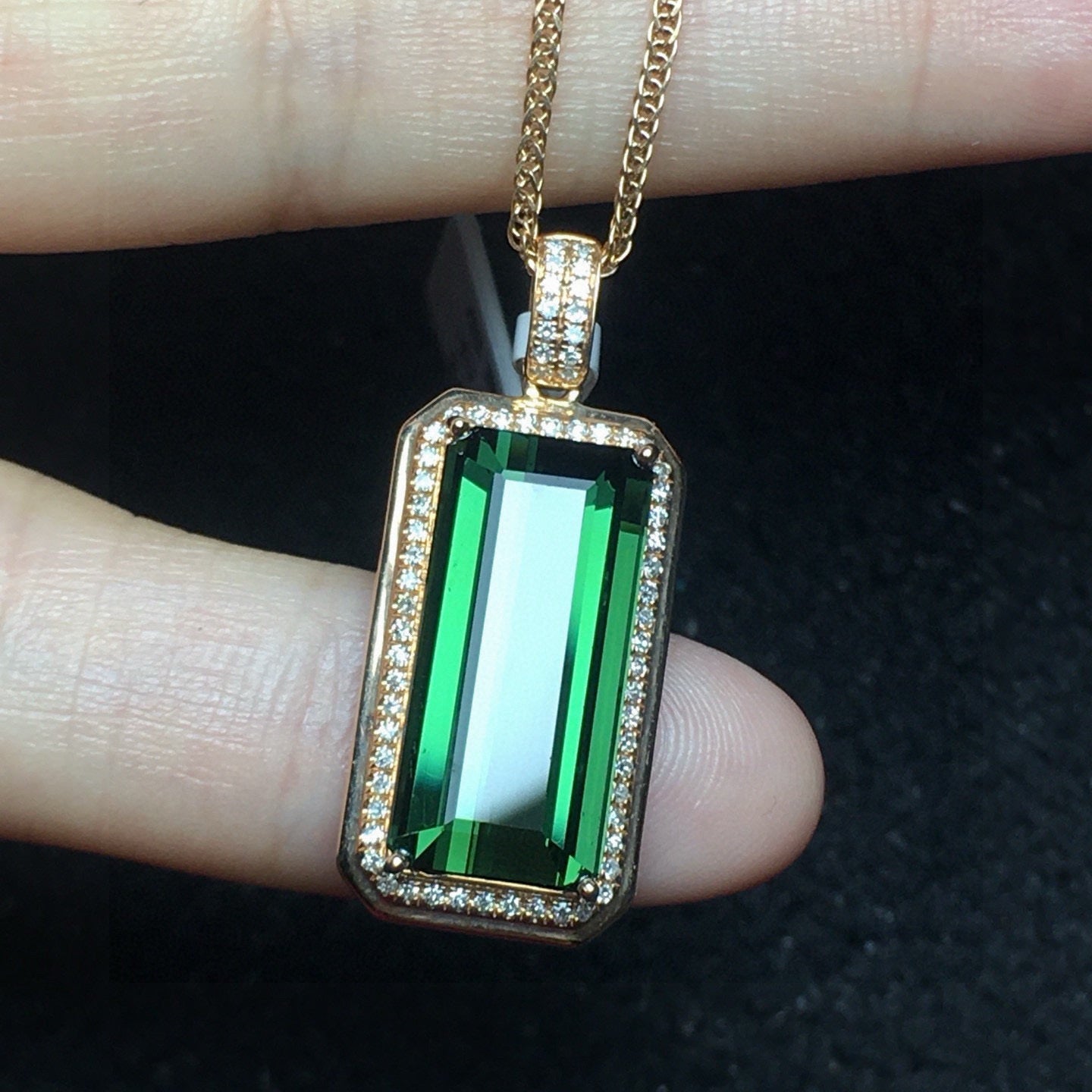 Ref:231023116 // Gold Content:14K Gold // Main Gemstone:Tourmaline // Shape:Octagonal // Carat Weight:6.82ct // Color:Green // Treatment:Natural // // Adjacent Gemstone 2 : Diamond // Number of stones:68 // Shape:Round // Clarity Grade:VS-SI // Color:H // Treatment:Natural // Cut Grade:G //