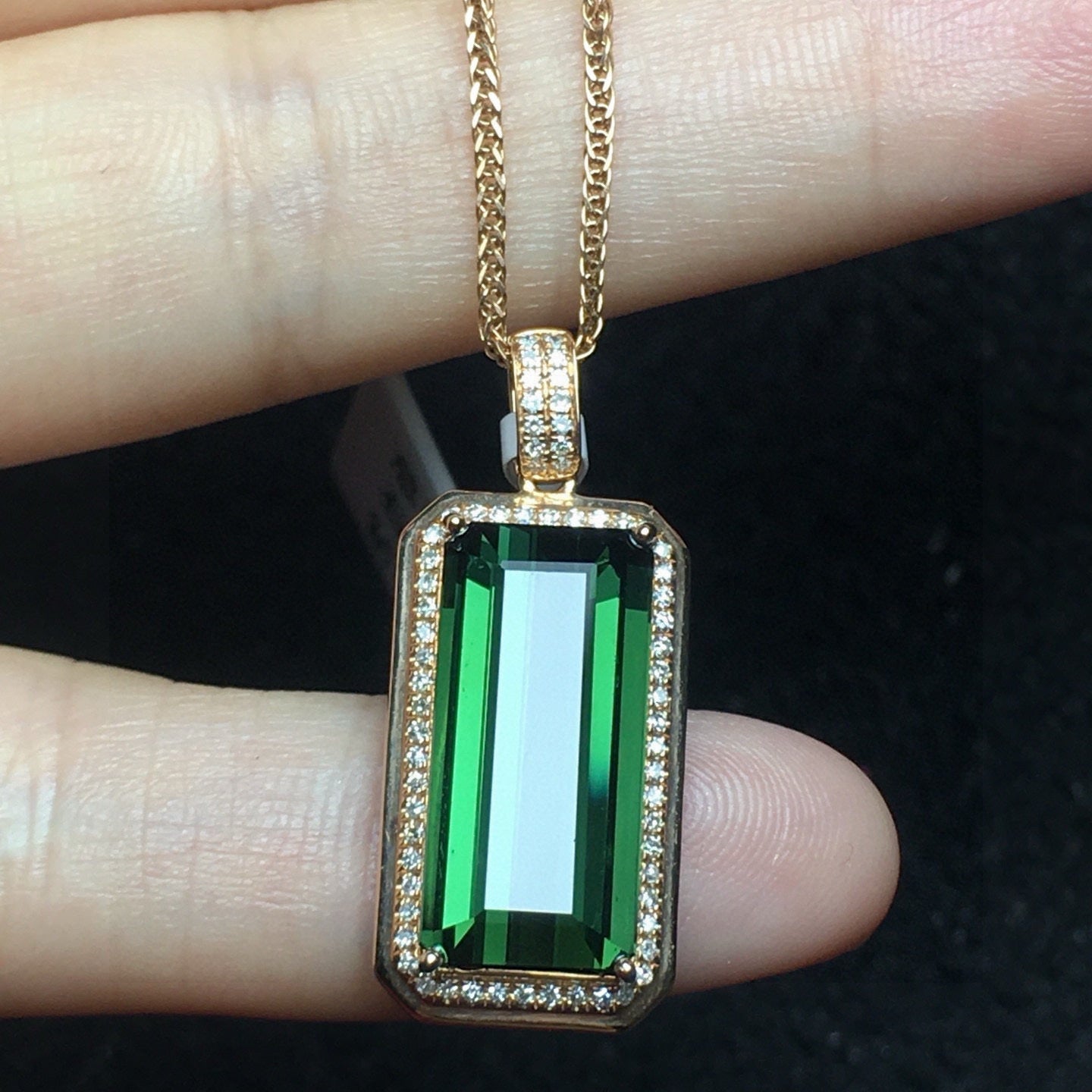 14K GOLD 6.82 CT NATURAL TOURMALINE & DIAMOND PENDANT( WITHOUT CHAIN )