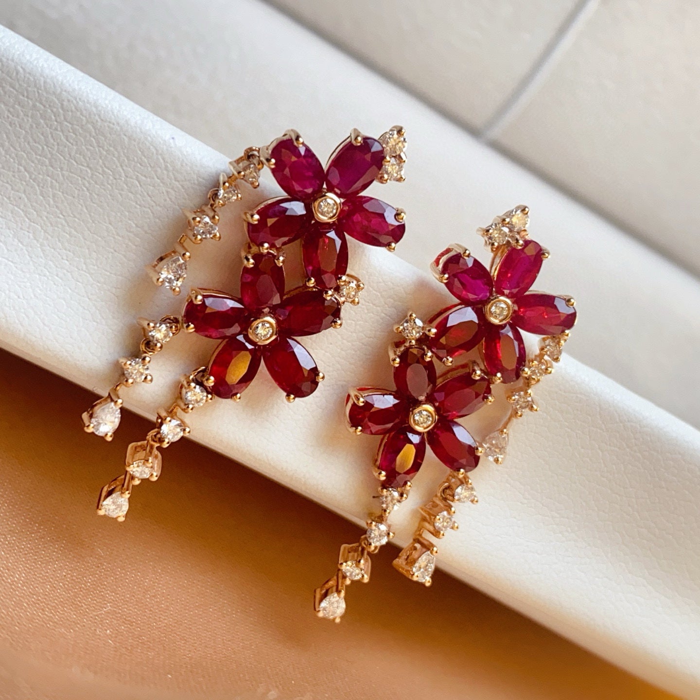 Ref:231021139 // Gold Content:14K Gold // Main Gemstone:Ruby // Shape:Oval // Carat Weight:6.85ct // Color:Red // Treatment:Natural // // Adjacent Gemstone 2 : Diamond // Number of stones:33 // Shape:Multiply // Clarity Grade:VS-SI // Color:H // Treatment:Natural //