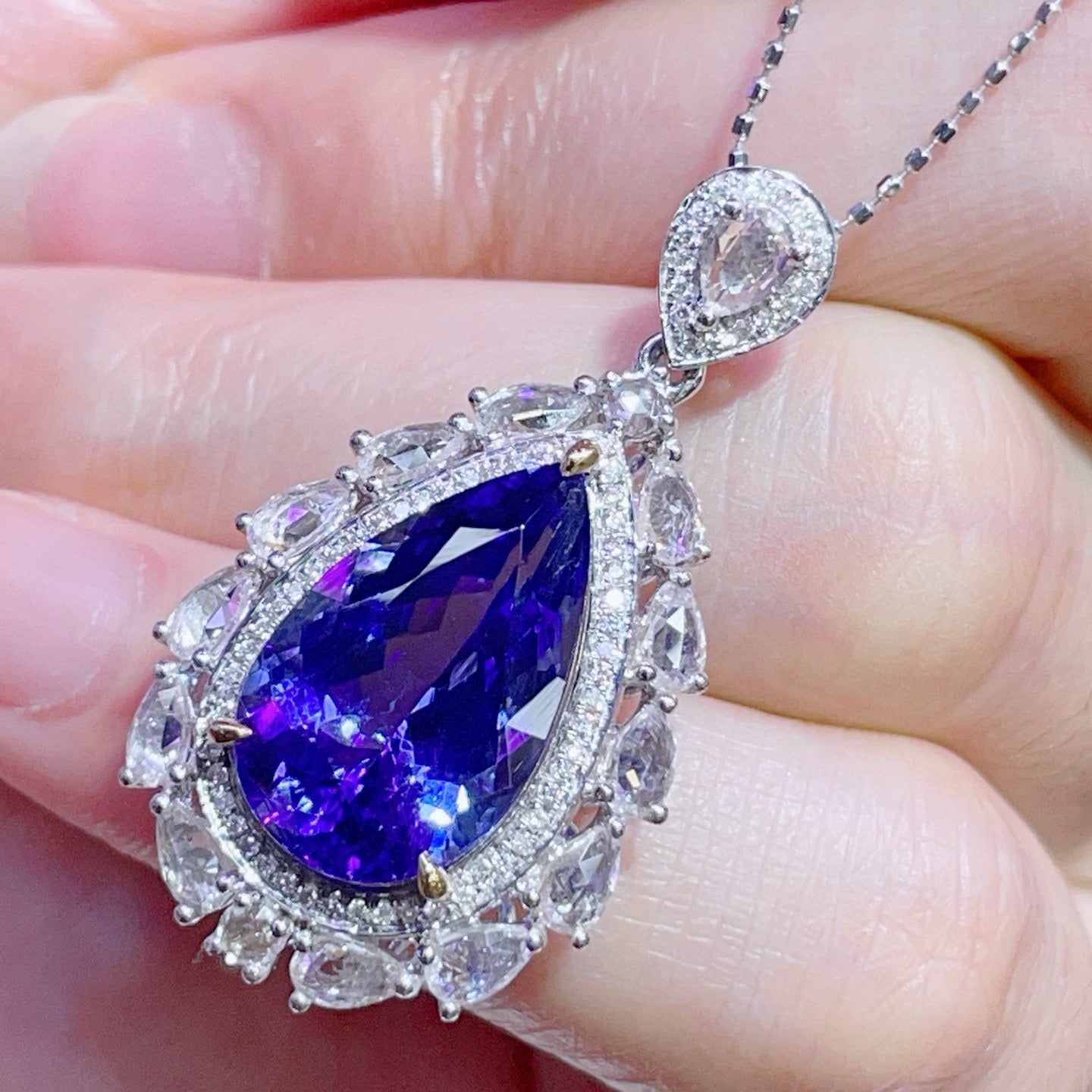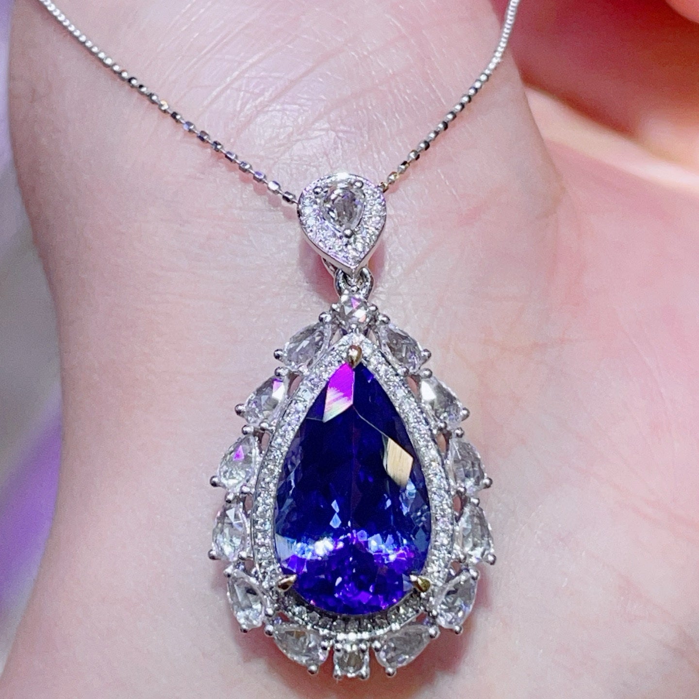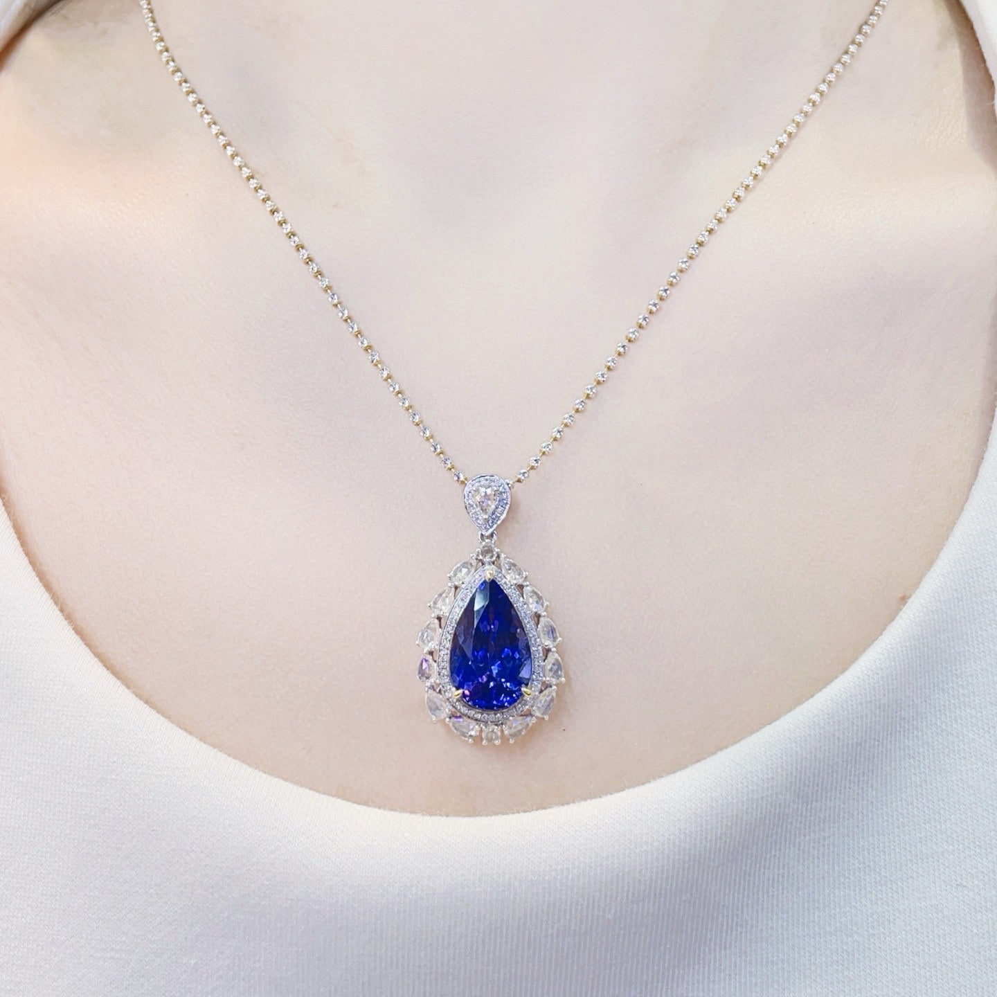 Ref:231023164 // Gold Content:14K Gold // Main Gemstone:Tanzanite // Shape:Pear // Carat Weight:7.05ct // Color:Blue // Treatment:Natural // // Adjacent Gemstone 2 : Diamond // Shape:Round // Carat Weight:0.2ct // Clarity Grade:VS-SI // Color:H // Treatment:Natural // Cut Grade:G // // Adjacent Gemstone 3 : Sapphire // Number of stones:15 // Shape:Pear & Round // Color:White // Treatment:Natural //