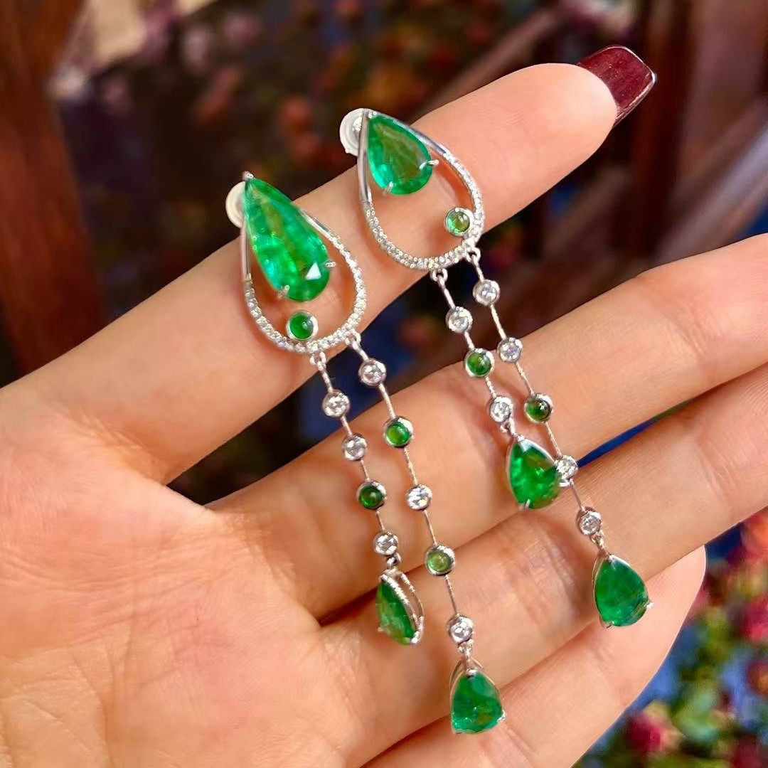 Ref:231021202 // Gold Content:14K Gold // Main Gemstone:Emerald // Shape:Pear // Carat Weight:6.84ct // Color:Green // Treatment:Natural // // Adjacent Gemstone 2 : Diamond // Shape:Round // Carat Weight:0.42ct // Clarity Grade:VS-SI // Color:H // Treatment:Natural // Cut Grade:G // // Adjacent Gemstone 3 : Emerald // Shape:Round // Carat Weight:0.33ct // Color:Green // Treatment:Natural // Cut Grade:G //