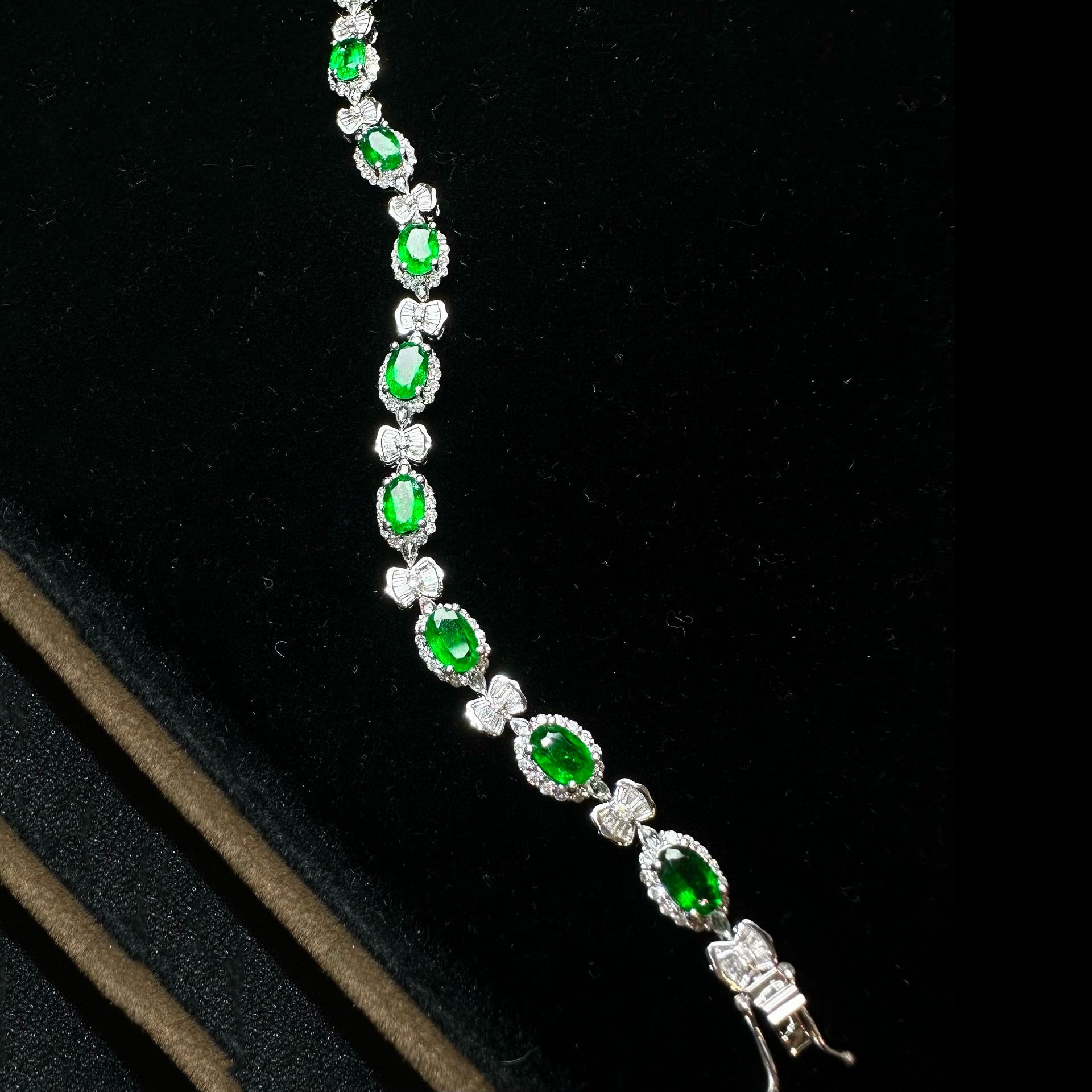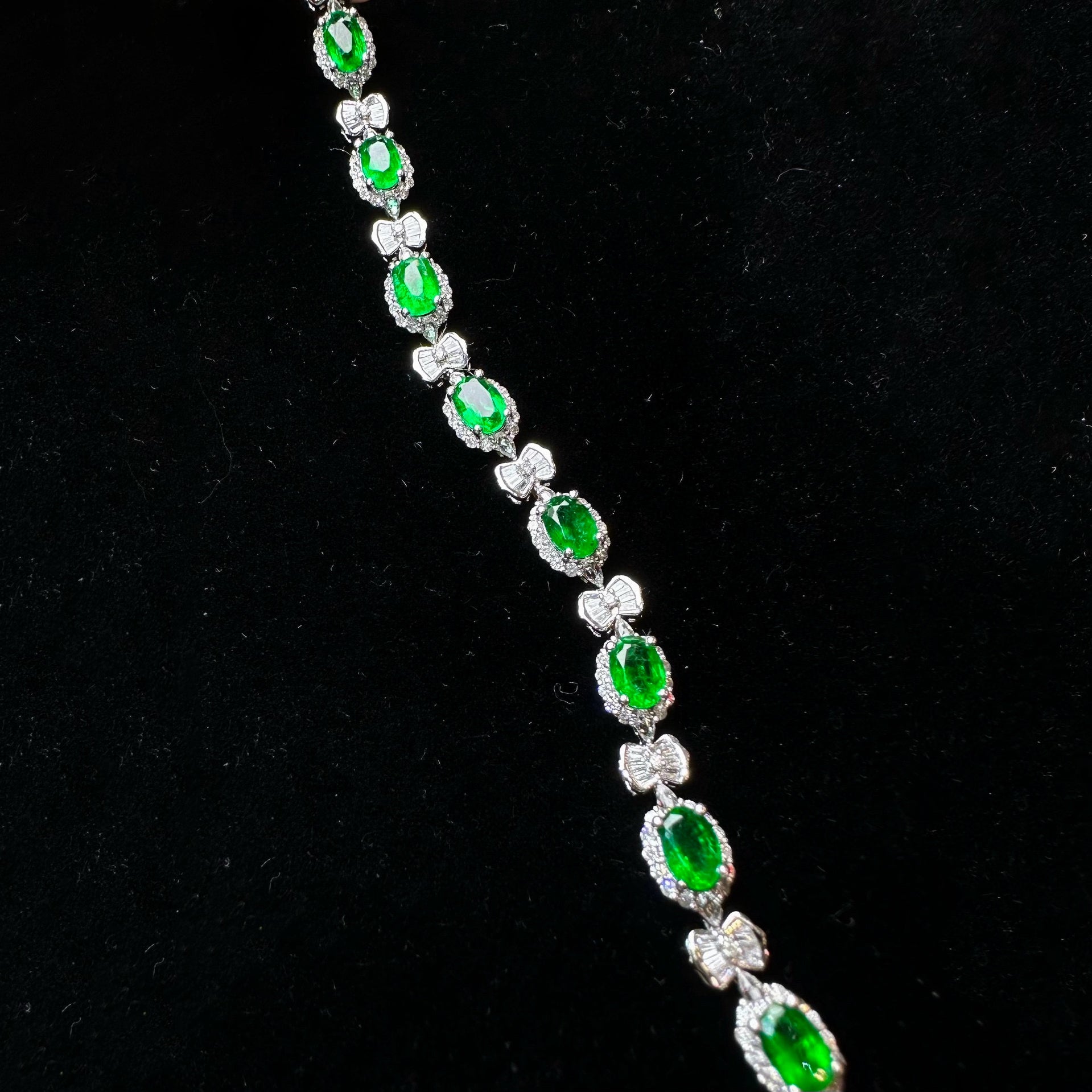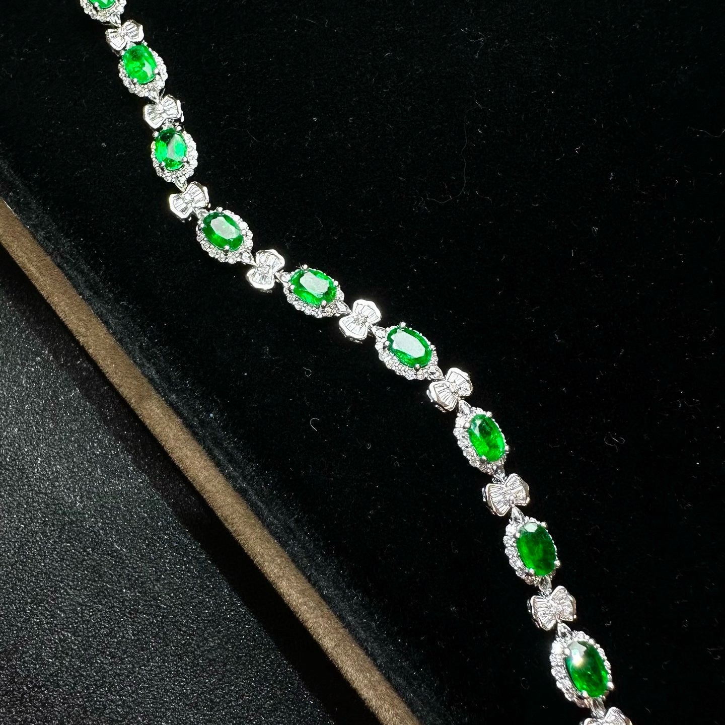 14K GOLD 7.30 CTW VIVID GREEN NATURAL EMERALD & DIAMOND BRACELET