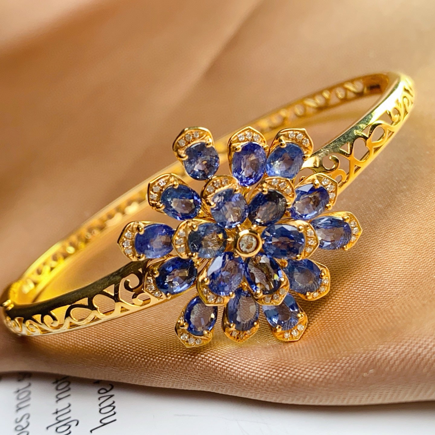 14K GOLD 8.00 CT NATURAL SAPPHIRE & DIAMOND & SAPPHIRE BANGLE