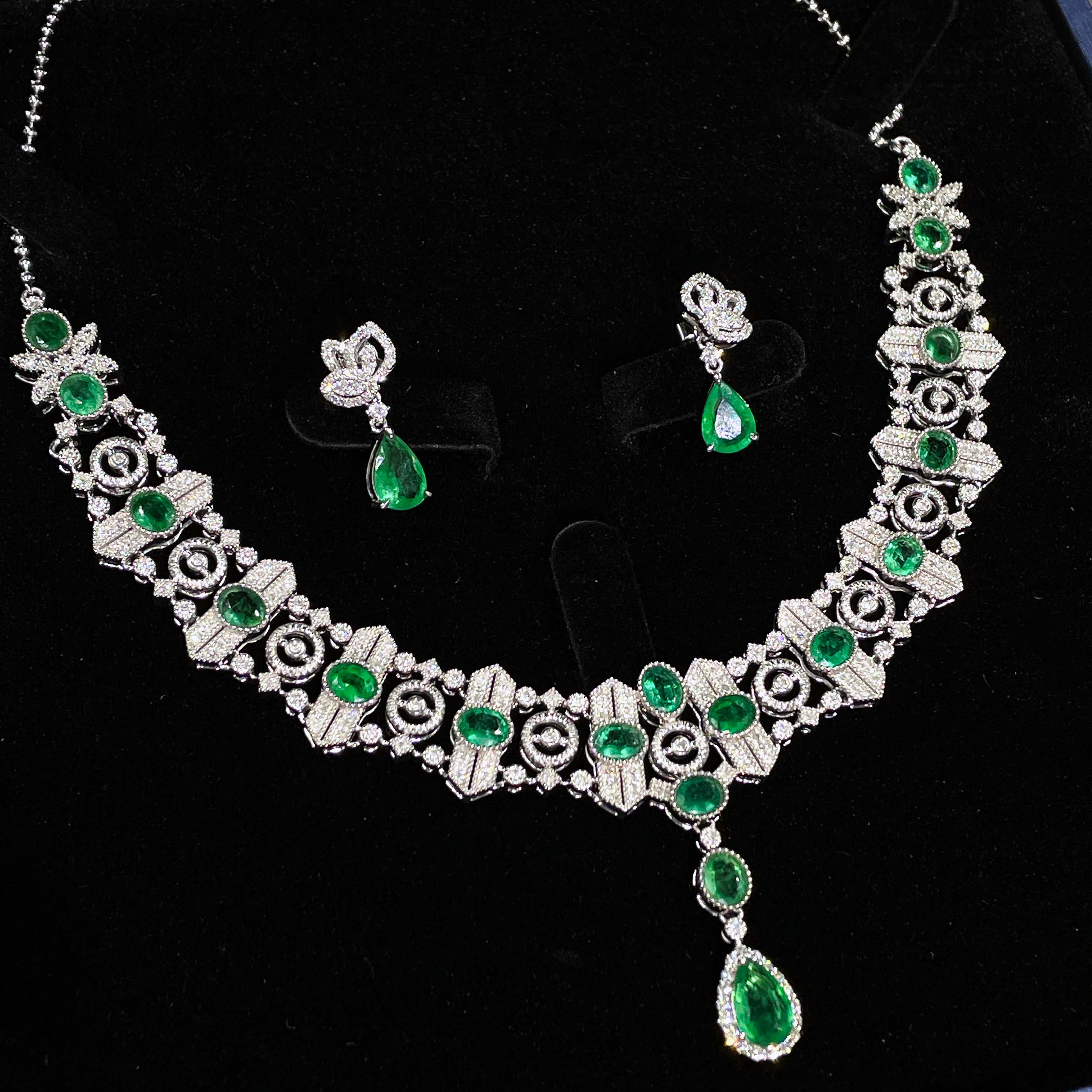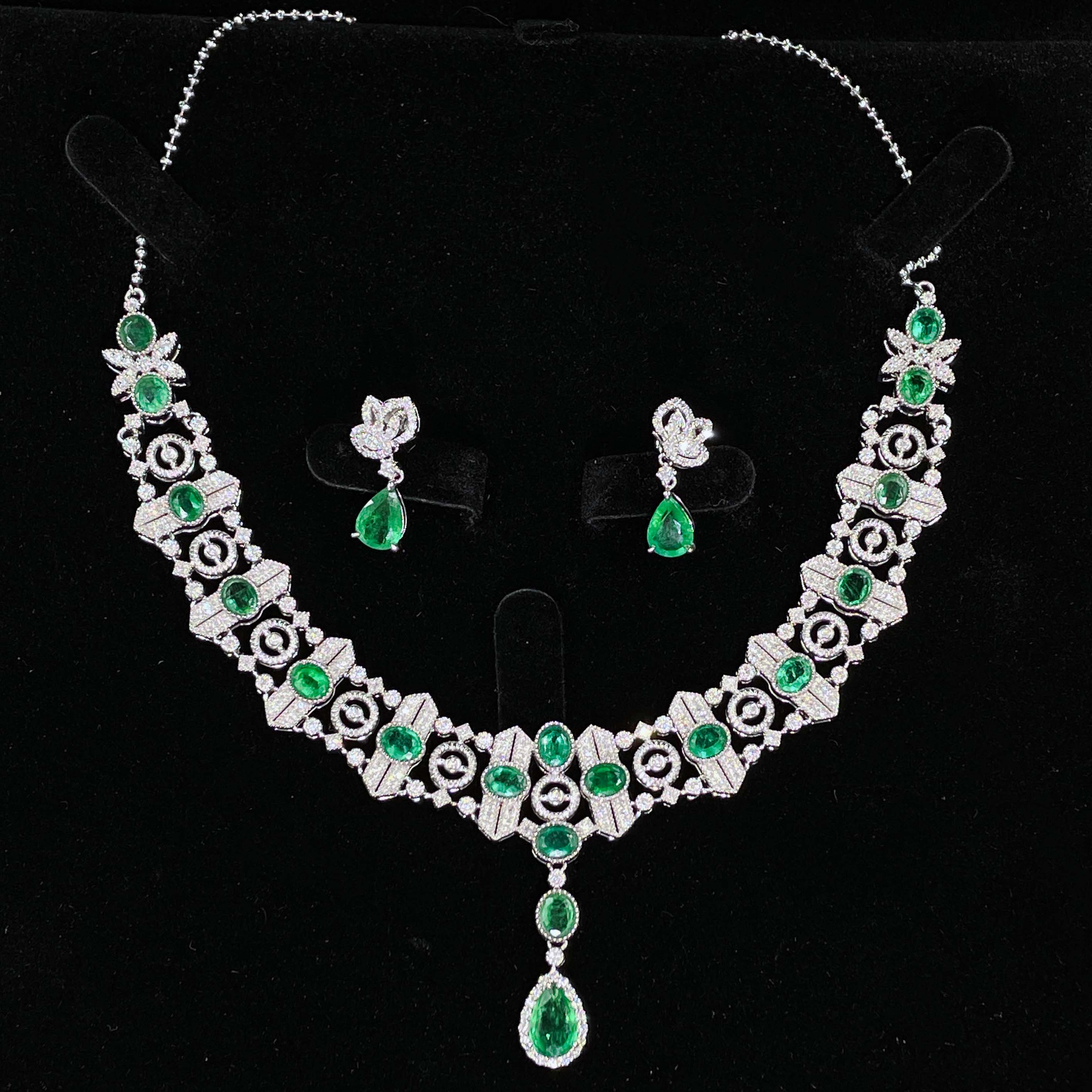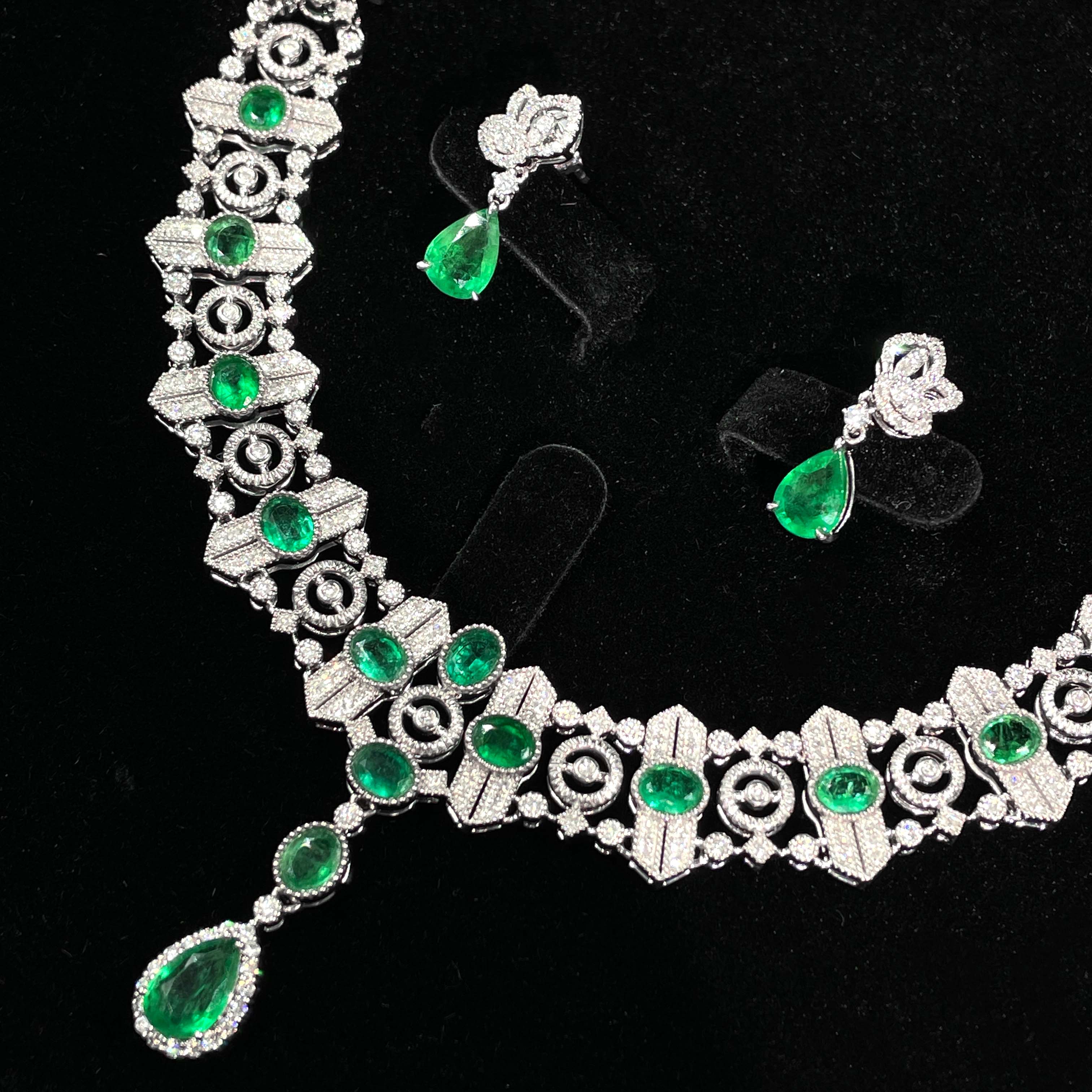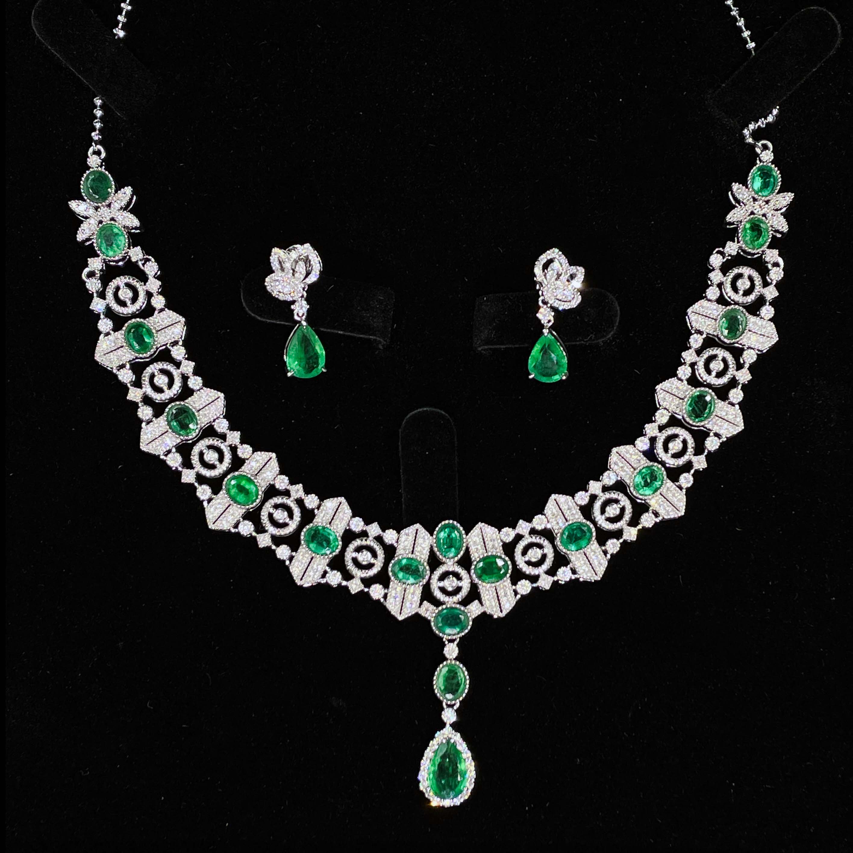 Ref:231027007 // Gold Content:14K Gold // Earrings // Main Gemstone:Emerald // Shape:Pear // Carat Weight:1.4ct // Color:Green // Treatment:Natural // // Adjacent Gemstone 2 : Diamond // Shape:Round // Carat Weight:0.19ct // Clarity Grade:VS-SI // Color:H // Treatment:Natural // Cut Grade:G // // Necklace // Main Gemstone:Emerald // Shape:Multiply // Carat Weight:5.95ct // Color:Green // Treatment:Natural // // Adjacent Gemstone 2 : Diamond // Shape:Round // Carat Weight:1.16ct // Clarity Grade:VS-SI // Color:H // Treatment:Natural // Cut Grade:G //