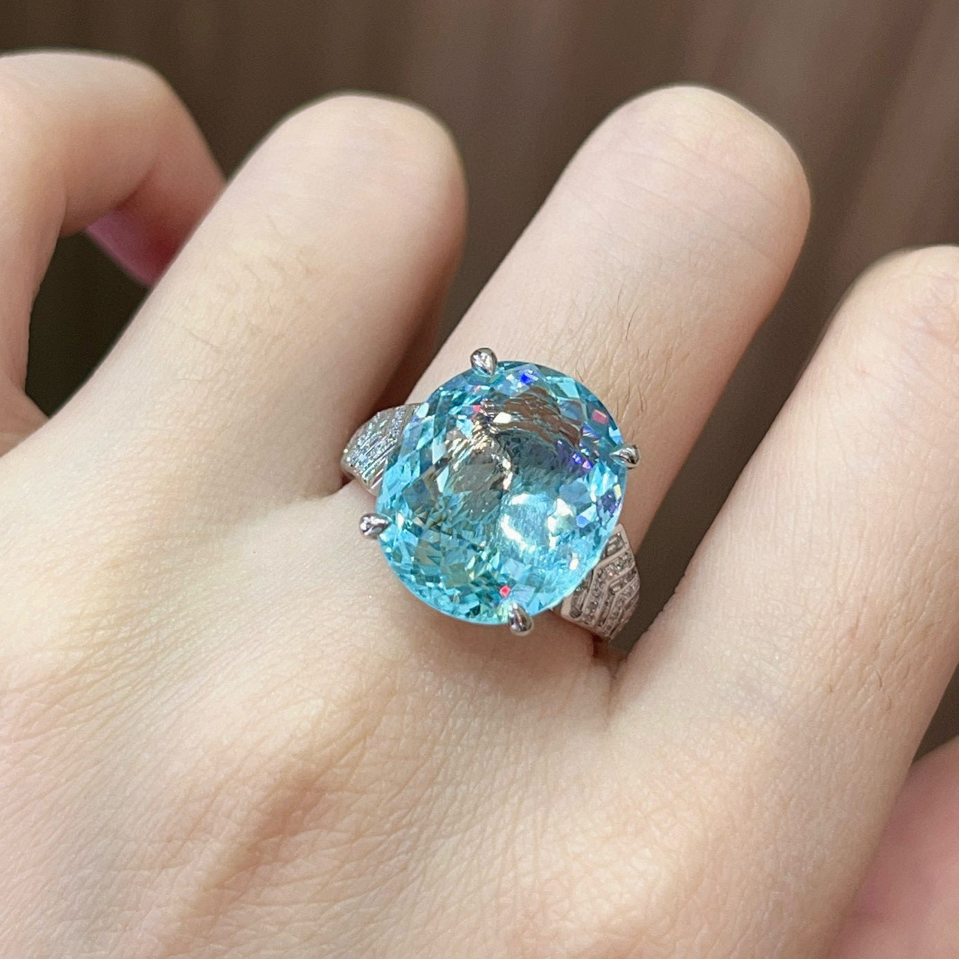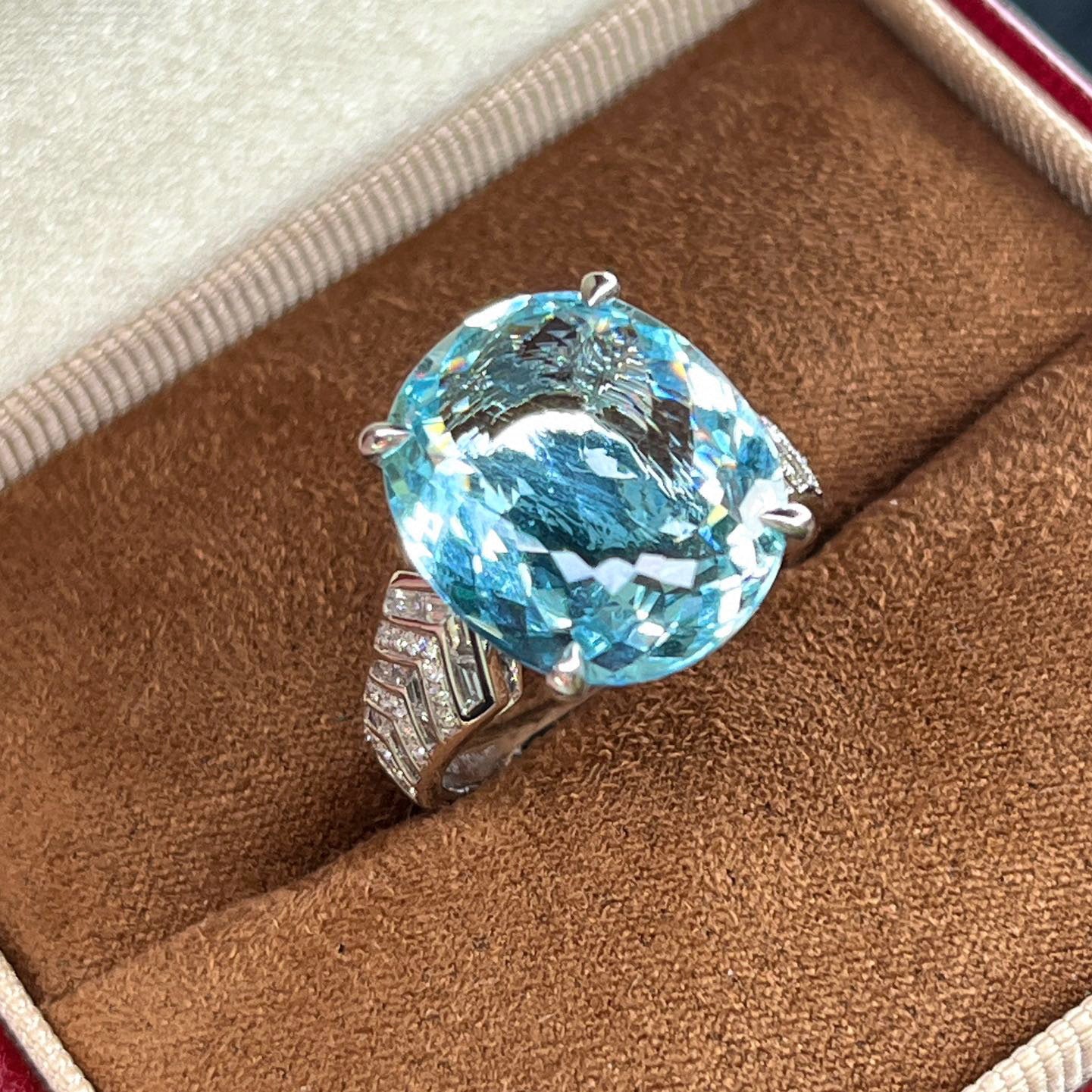 Ref:231021119 // Gold Content:14K Gold // Ring Size:7.25US // // Main Gemstone:Aquamarine // Shape:Oval // Carat Weight:8.40ct // Color:Santa Maria Color // Treatment:Natural // // Adjacent Gemstone 2 : Diamond // Shape:Round // Carat Weight:0.50ct // Clarity Grade:VS-SI // Color:H // Treatment:Natural // Cut Grade:G //
