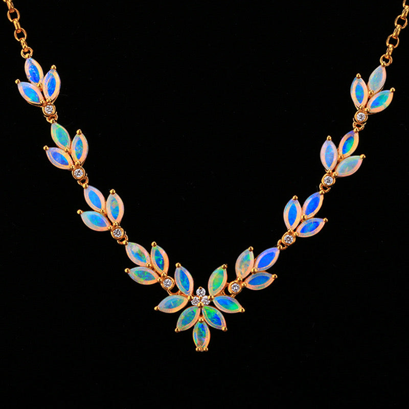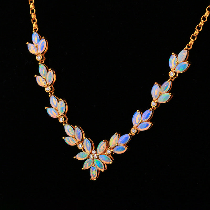 18K GOLD 2.6 CT NATURAL OPAL & DIAMOND NECKLACE