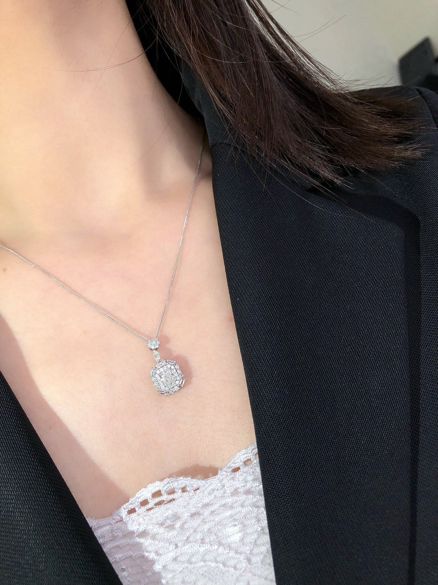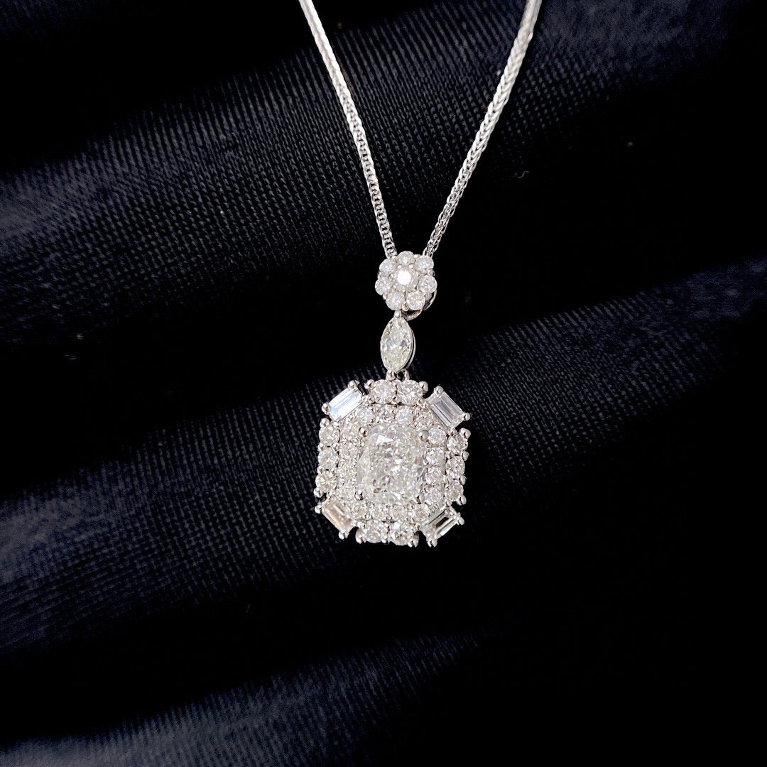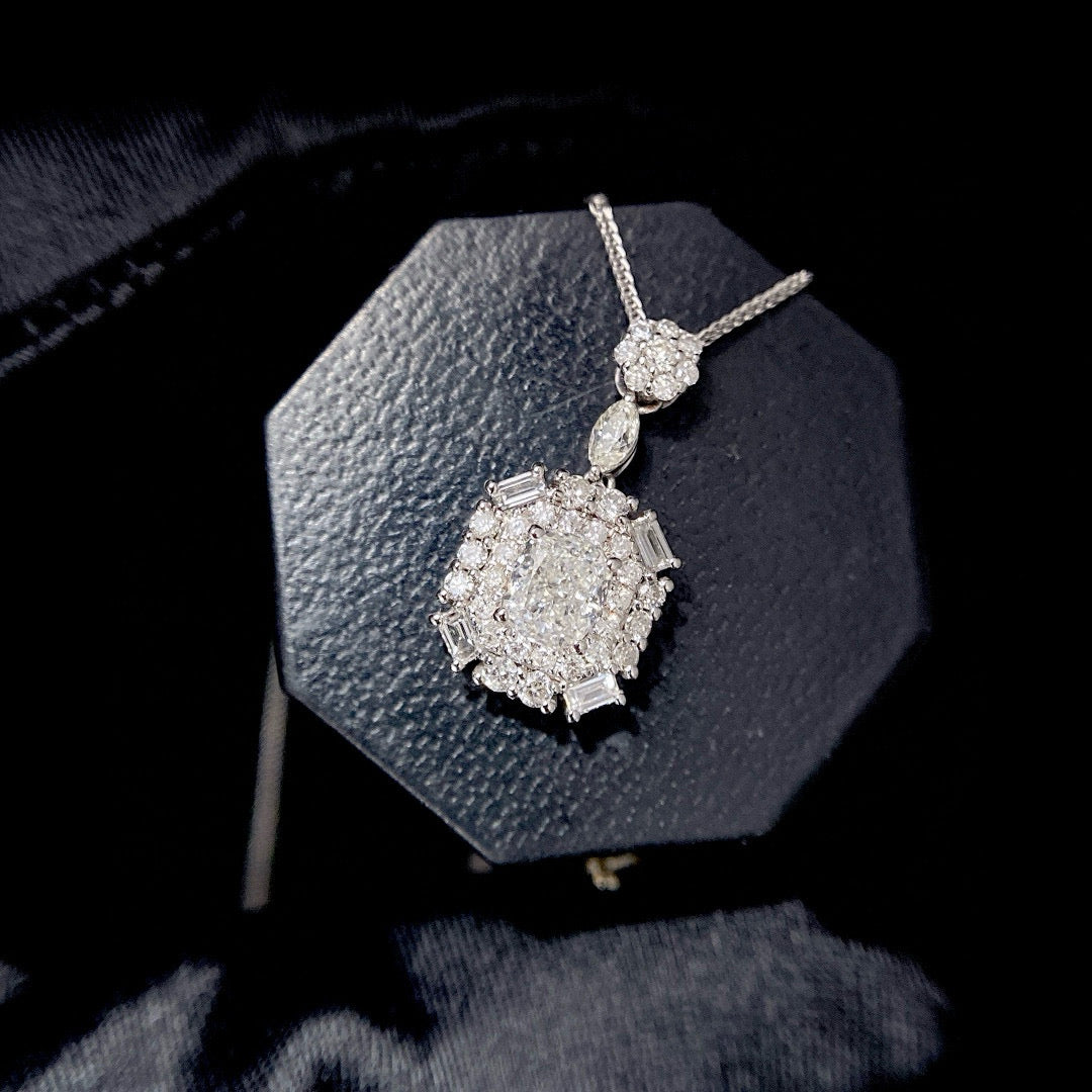 GIA CERTIFIED 14K GOLD 0.5 CT NATURAL H VS1 CUSHION DIAMOND NECKLACE