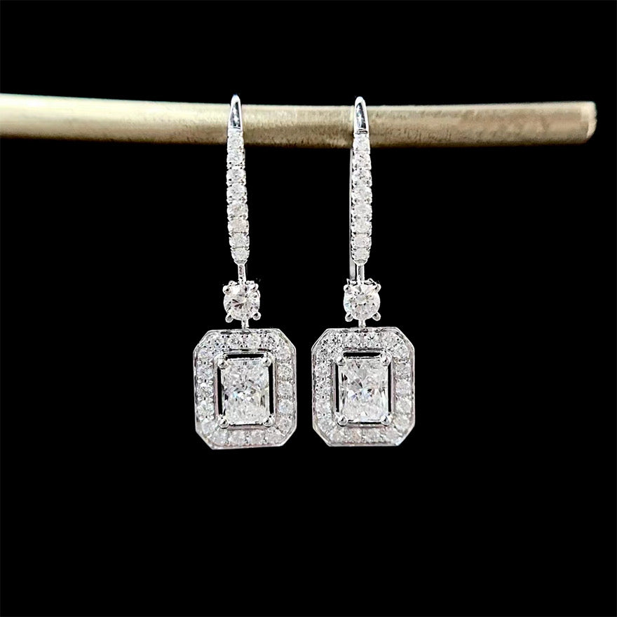 GIA CERTIFIED 14K GOLD 1.05 CTW NATURAL G VS2 RADIANT DIAMOND EARRINGS